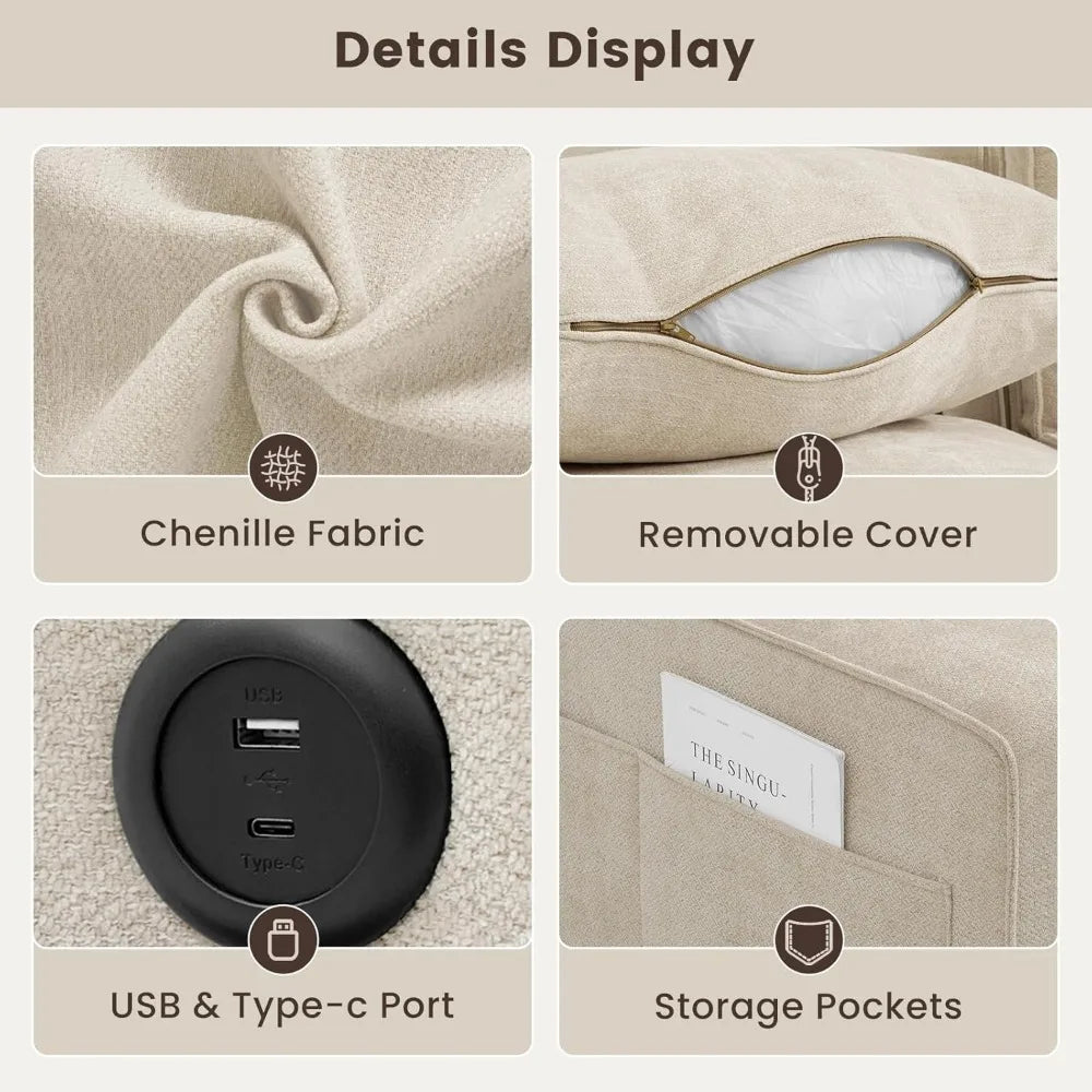 - Integrated USB and Type-C Charging Ports: Keep your devices powered up without leaving the sofa, making it perfect for work, relaxation, or entertainment.