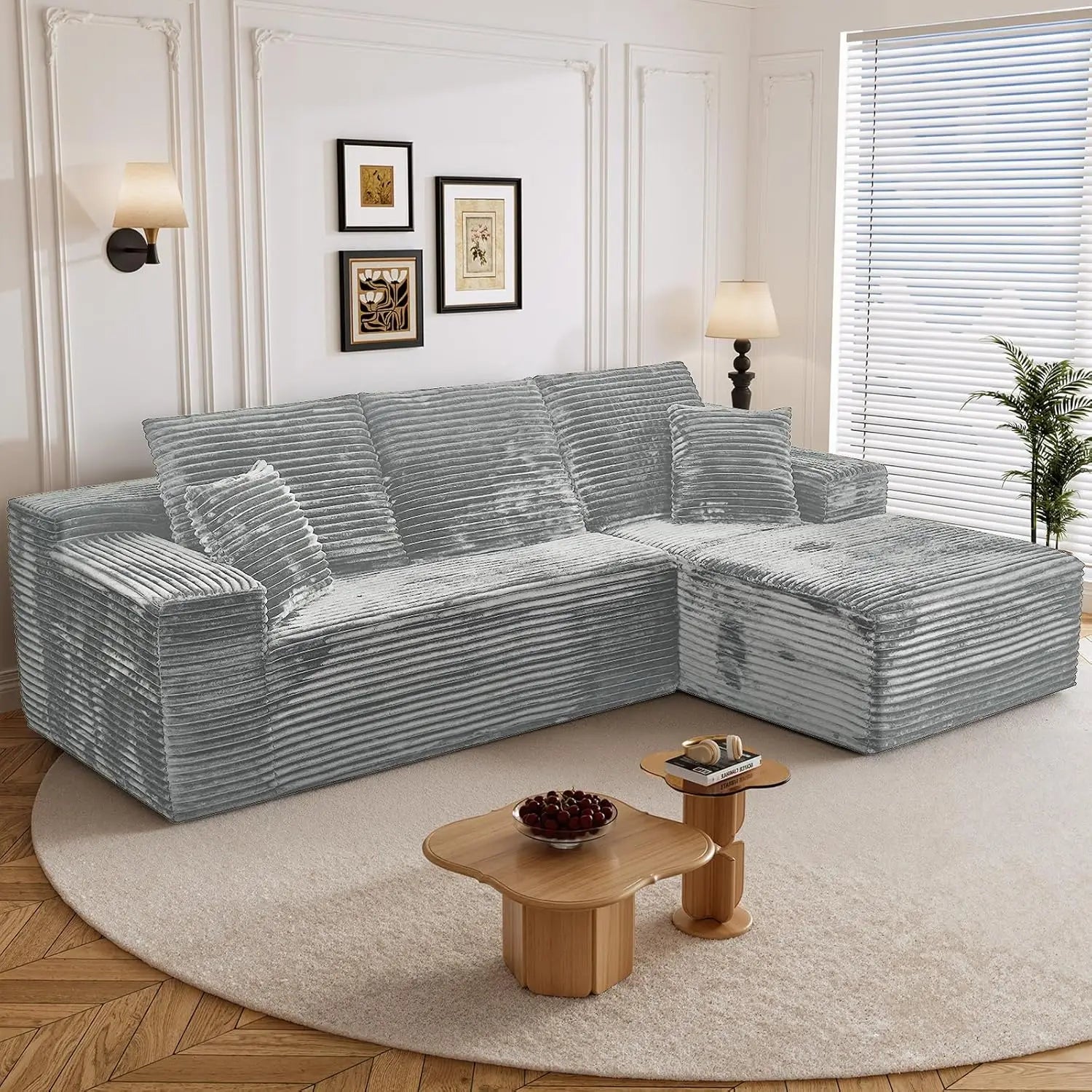 Crafted from upgraded wrinkle-resistant corduroy fabric, this sofa combines durability with a soft, skin-friendly touch. The vertical velvet texture adds warmth and elegance, enhancing both small spaces and large rooms with its inviting look. This fabric is designed to resist wear and tear, so it will maintain its fresh appearance even in busy households.
