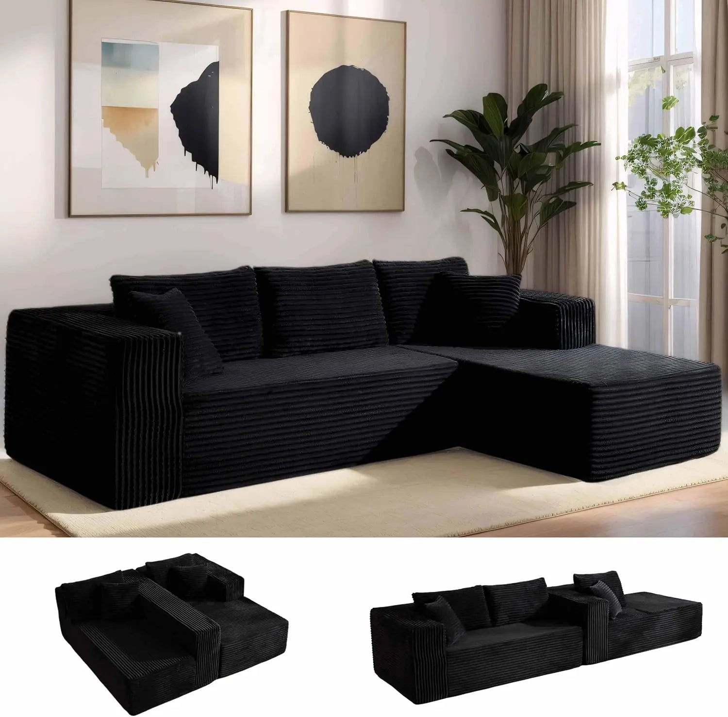 Built with a high-density resilient foam core combined with supportive memory foam layers, this sectional delivers cloud-like comfort without sacrificing durability. Unlike traditional sofas with squeaky frames or stiff cushions, this boneless design ensures a smooth, relaxing experience every time you sit down. The full-floor base provides solid structural integrity, making it a practical choice for everyday use that won’t lose shape or support over time.