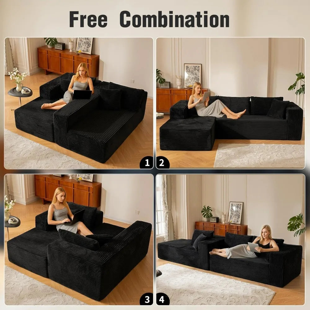 This 110” Cloud Sectional Couch fits perfectly in living rooms, apartments, bedrooms, offices, or guest rooms, offering a cozy yet stylish centerpiece that adapts to your lifestyle. Its compact footprint and modular design make it ideal for both small and spacious homes.