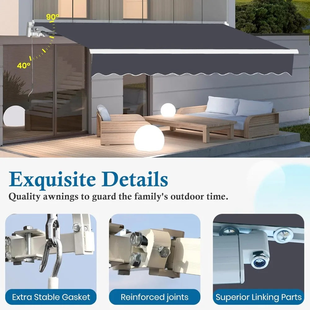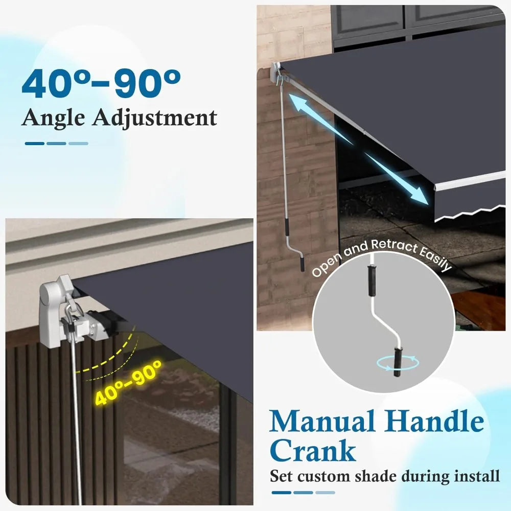 Smart Shade Solution: Easily adjust the awning with a manual crank to suit your needs—shade when you want it, open view when you don’t.