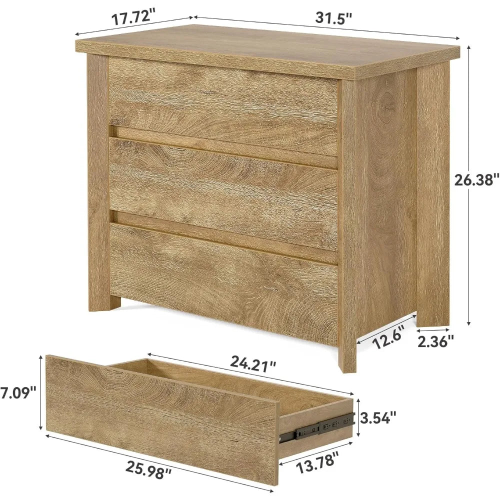 The 3 spacious drawers offer plenty of room to organize essentials like books, gadgets, bedding, or personal items. No more cluttered surfaces or lost remotes. Whether you’re furnishing a master bedroom, guest room, or a cozy studio apartment, this nightstand fits right in with its warm oak tone and timeless farmhouse design.