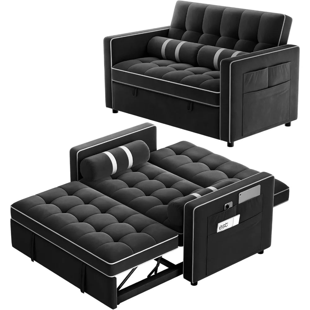 The 3-in-1 design is a true space saver, perfect for apartments, small living rooms, or multipurpose spaces. With three versatile modes—sofa, recliner chair, and sleeper bed—you get a multifunctional piece that adapts effortlessly to your needs. Simply pull the hidden handle and slide out the bed on smooth rollers to transform the loveseat into a cozy bed for overnight guests. The loveseat dimensions are 52.36''L x 32.68''W x 33.07''H, expanding to a spacious sleeper size of 70.27''L x 45.28''W x 24.61''H.