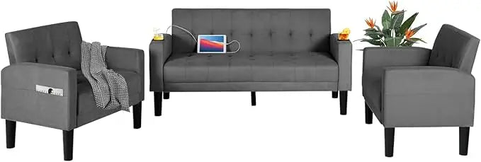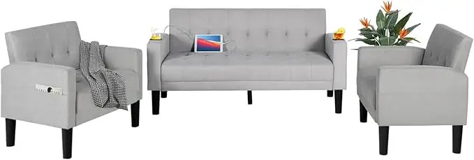 FurnitureZ l 3 Piece Living Room Sofa Set Loveseat Sofas Sets for Living Room