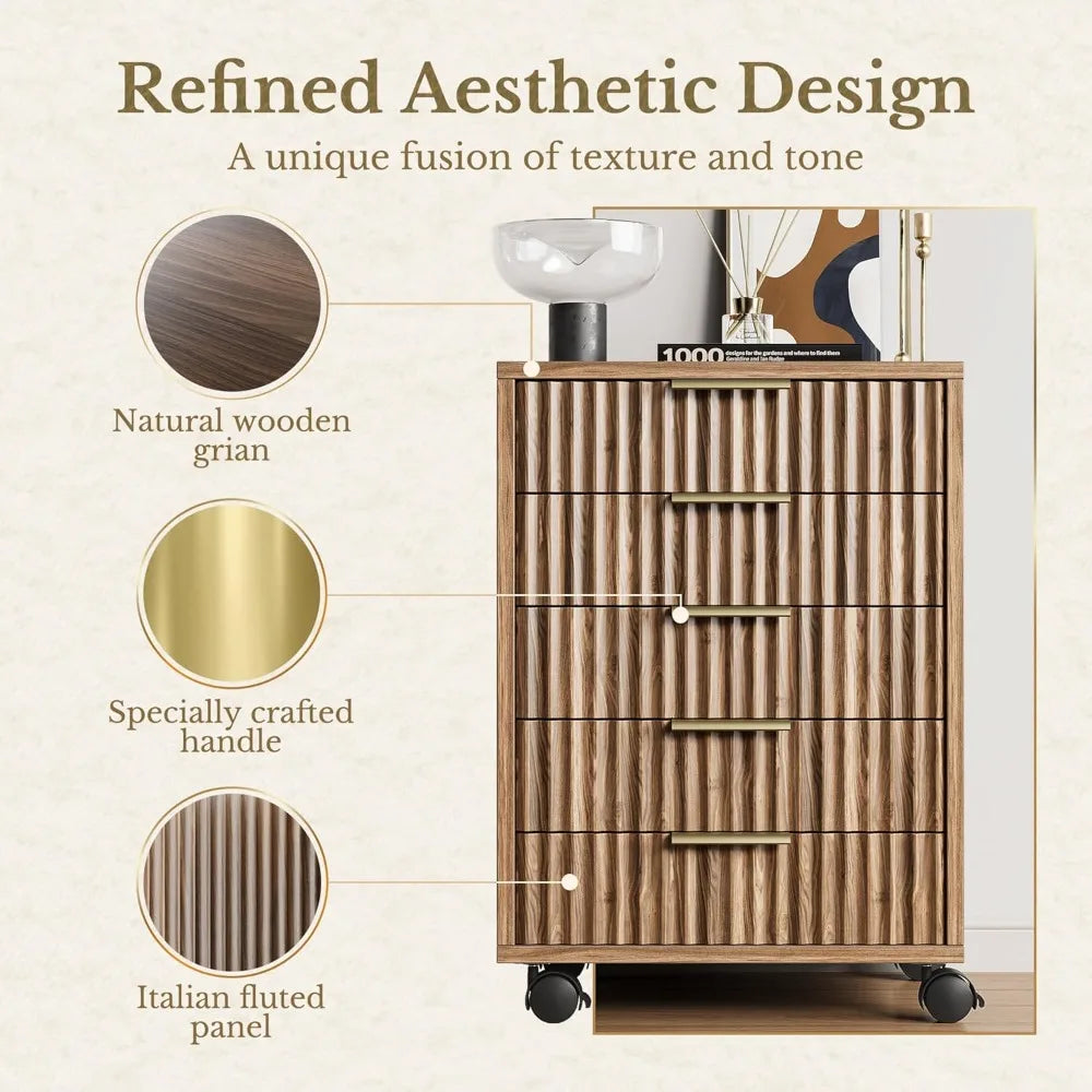 The five spacious drawers provide ample room to organize your paperwork, office supplies, and other essentials, helping you keep your desk clutter-free and your important items within easy reach. Despite its generous storage, the slim profile means it won’t take up unnecessary floor space, making it a great choice for smaller rooms or compact home offices.