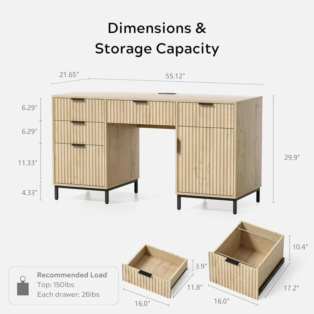 Generous Workspace: The 55" wide desktop provides ample room for all your essentials without feeling cramped.