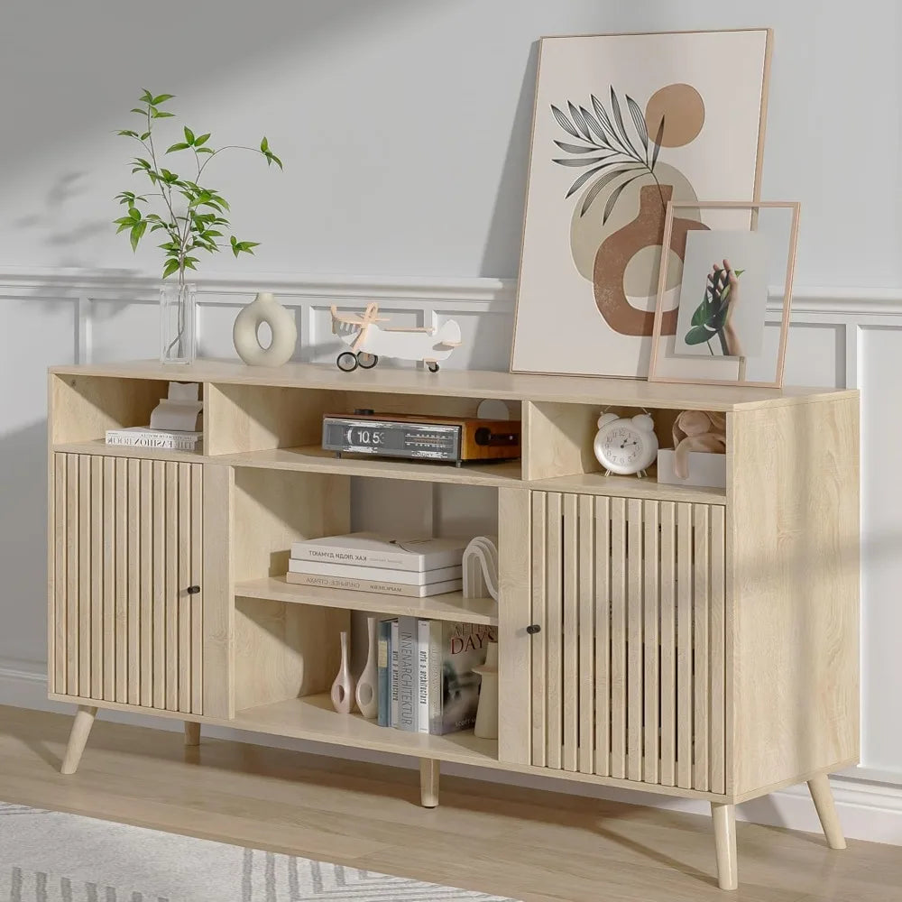 FurnitureZ l 65" Mid Century Modern Fluted TV Stand for Living Room