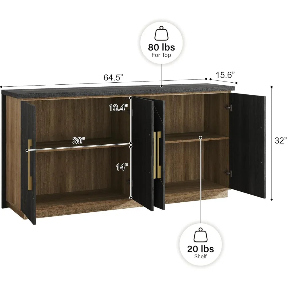 FurnitureZ l 65" Modern Buffet Sideboard for Living Room, Dining Room