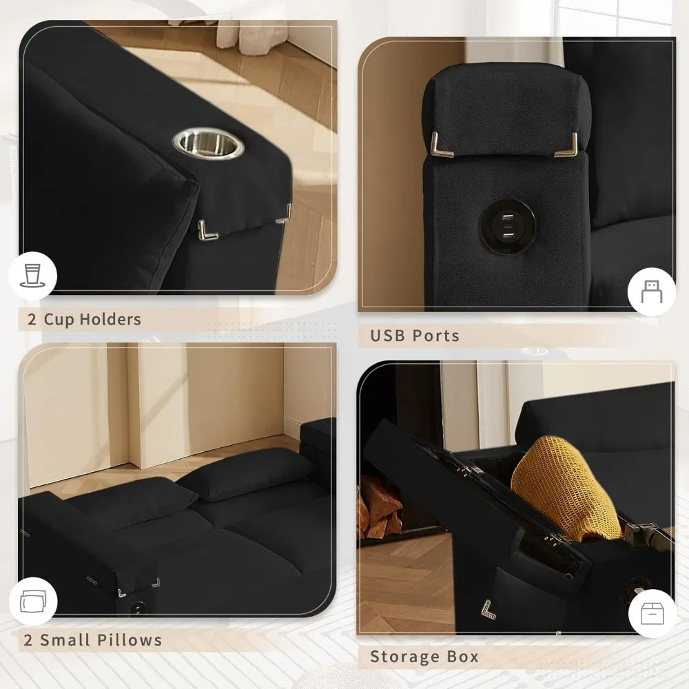 Meet the 66" Pullout Couch Sleeper Sofa with Hidden Side Table, Storage Armrests & USB Charging from FurnitureZ: all the style and functionality you want, at a price that makes perfect sense. This sofa sleeper is thoughtfully designed to combine comfort, practicality, and modern convenience, making it the smart choice for anyone looking to maximize their living space without compromising on quality or style.