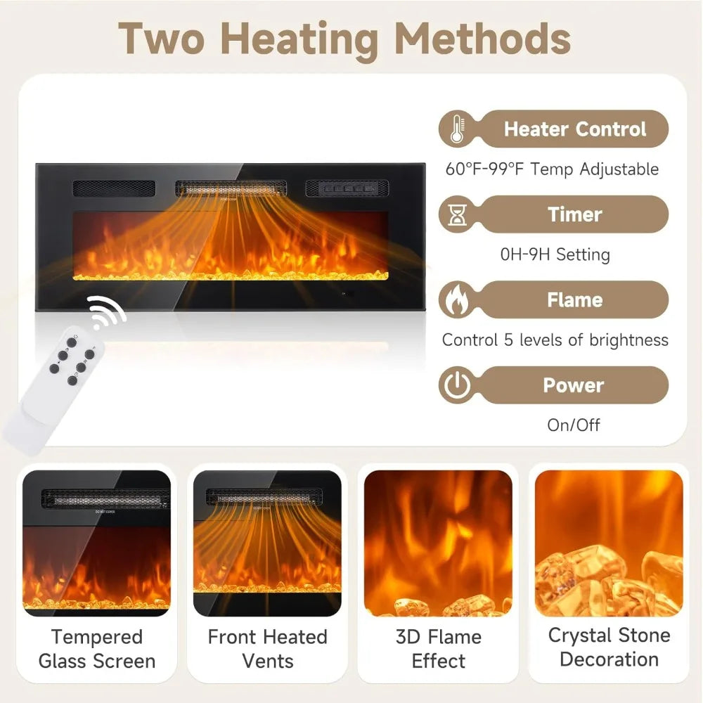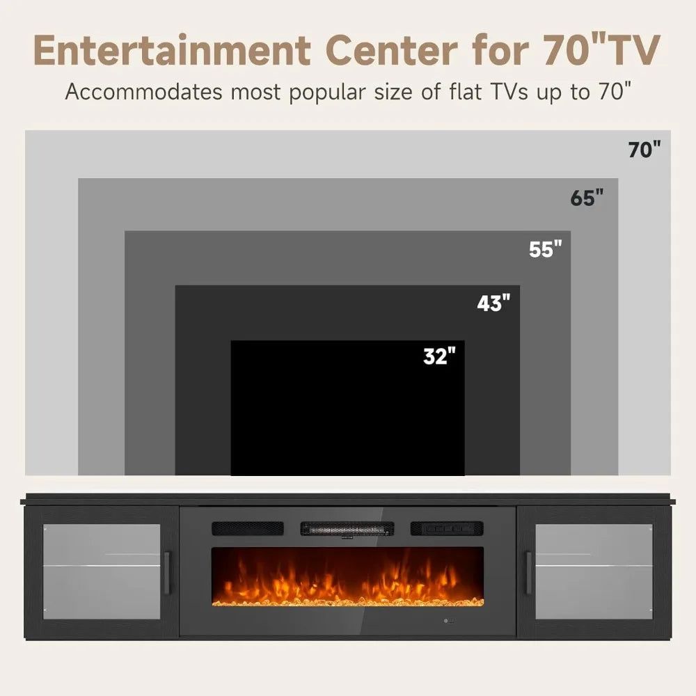 At the heart of this unit is a striking 36-inch mirrored electric fireplace that offers more than just warmth. With 5 brightness levels and 12 flame colors, plus 12 backlight and LED strip colors, you can easily customize the ambiance to match your mood or occasion. Whether you want a cozy glow for movie nights or a vibrant display for gatherings, this fireplace adapts to your needs. The included remote control lets you adjust the temperature between 62°F and 82°F and set a timer from 0 to 8 hours, so you can enjoy comfort and convenience without hassle.