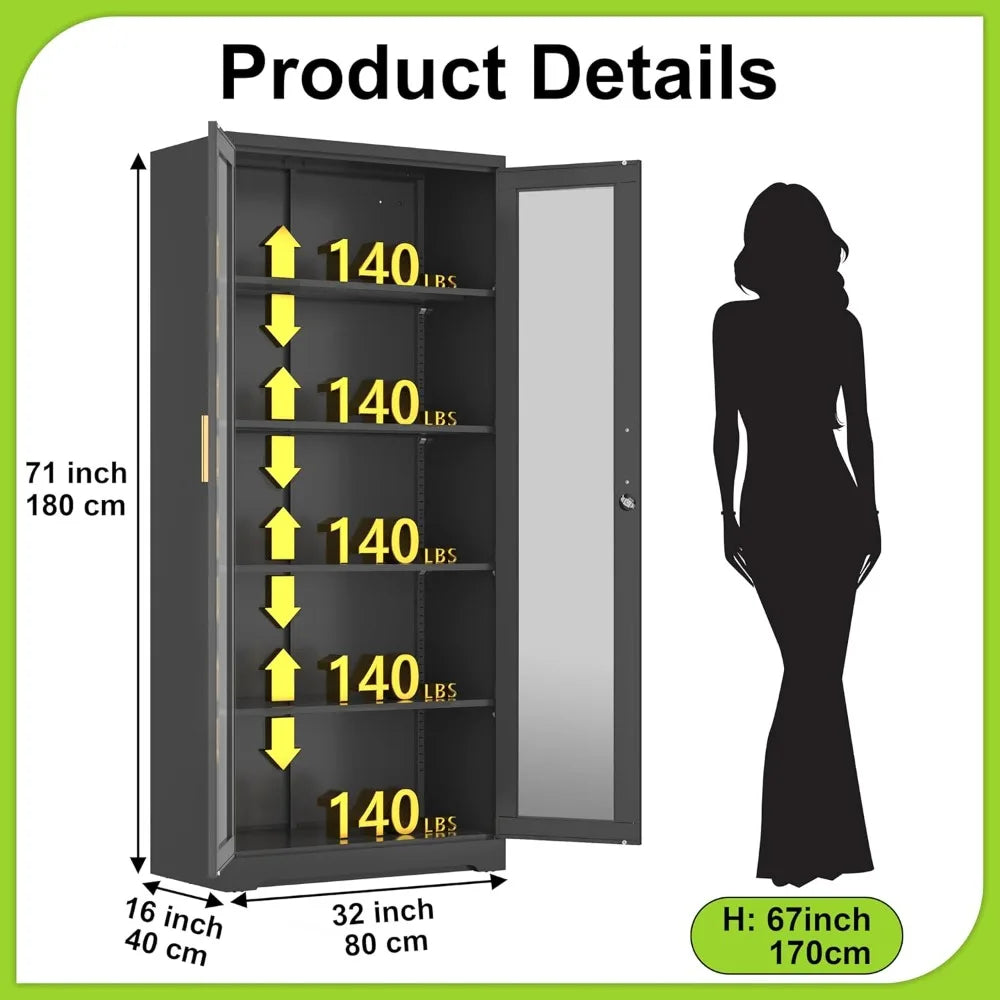 This display cabinet strikes the perfect balance between modern design and practical storage. Crafted from cold-rolled steel plate SPCC, it offers exceptional strength and long-lasting durability. Unlike traditional wooden or plastic cabinets, the metal frame is coated with an eco-friendly powder finish that resists corrosion and is odor-free, making it both easy to maintain and a healthier choice for your home.