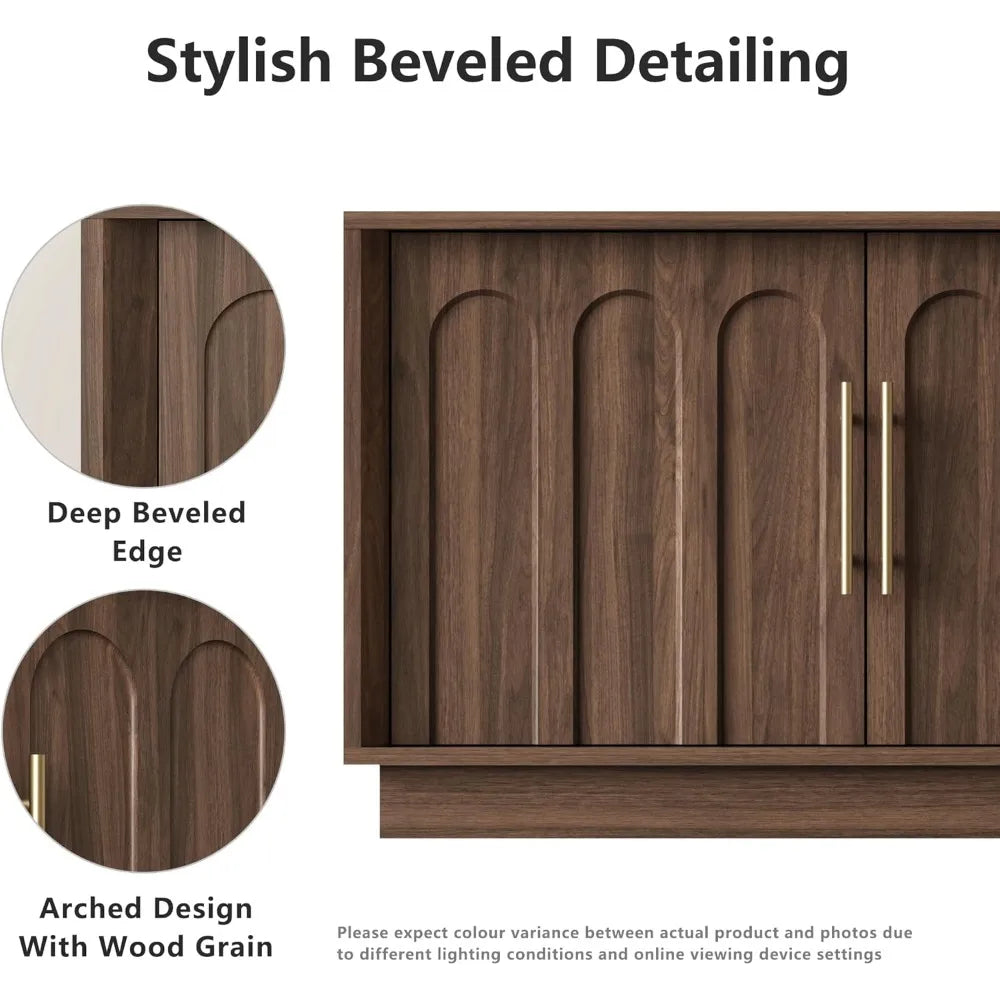 Adjustable Storage: Flexible shelving behind four doors adapts to your media and storage needs.
