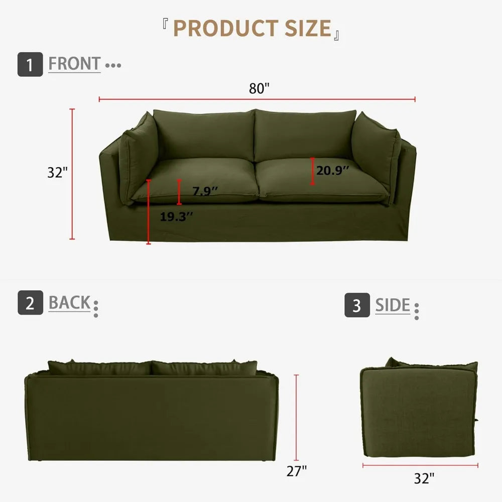 Practicality is key, and the 80" Cloud Sofa delivers. The removable covers are machine washable, making it easy to keep your sofa looking fresh and clean without hassle. This easy-care feature is perfect for busy households or anyone who values low-maintenance furniture. Plus, the fabric is chosen not only for its comfort but also for its durability and resistance to everyday wear.