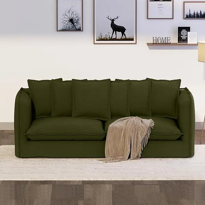 Crafted with a sturdy solid wood frame and matching wooden legs, this sofa is designed to last. The robust construction supports up to 750 lbs, ensuring stability and security for everyday use. Unlike sofas that wobble or shift, this one stays firmly in place, giving you a reliable and comfortable seating experience. The classic rectangular shape and neutral linen fabric upholstery bring a timeless elegance that fits effortlessly into a variety of décor styles.