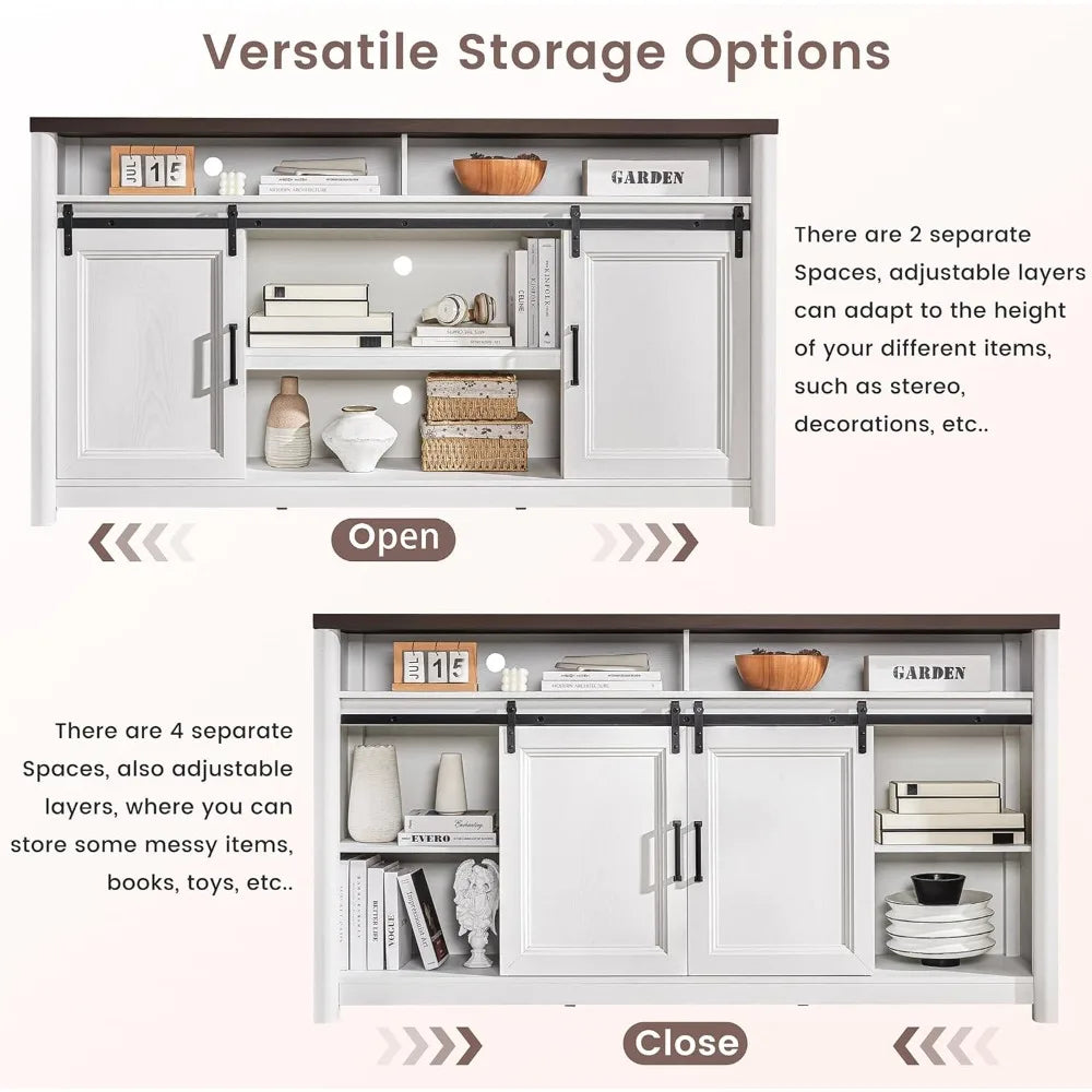 Crafted from engineered MDF wood, this entertainment center offers a sturdy frame that holds up well to everyday use. The wood is FSC-certified, ensuring that your purchase supports sustainable forestry practices—a detail that matters if you care about both quality and the environment. The white finish with rustic sliding barn doors and metal handles adds character and a touch of countryside elegance, creating a welcoming atmosphere in your home.