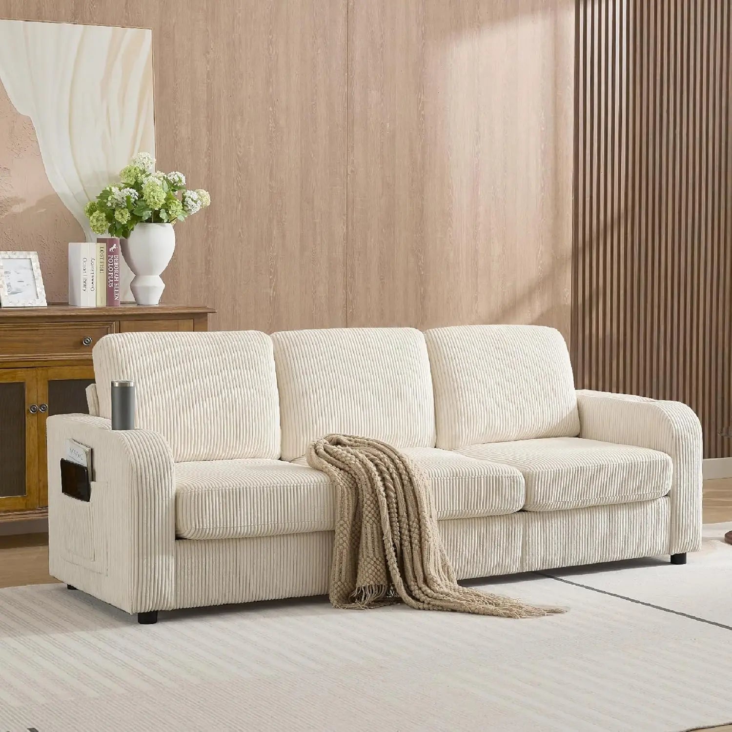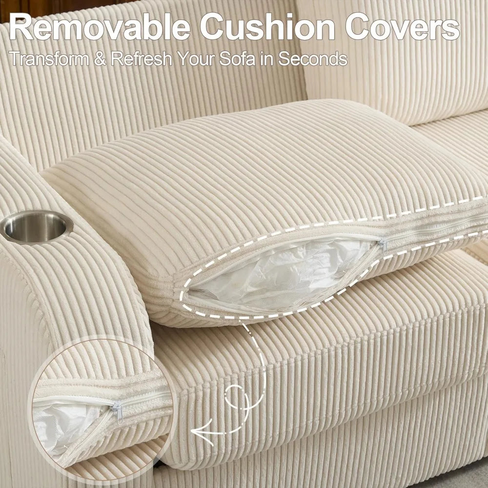 The upholstery is made from soft, breathable corduroy fabric that feels welcoming and gentle on the skin. It adds a warm, textured look to your living space while making the sofa comfortable to the touch—perfect for unwinding after a long day. The removable zippered covers make cleaning straightforward, so maintaining a fresh and stylish space is hassle-free.
