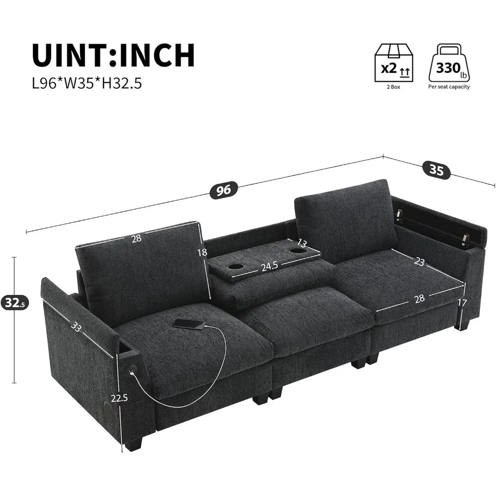 Integrated Bluetooth Speakers: Enjoy your favorite music, podcasts, or TV shows with clear sound coming directly from the sofa. This built-in feature removes the hassle of extra wires or bulky devices, keeping your space clean and uncluttered.