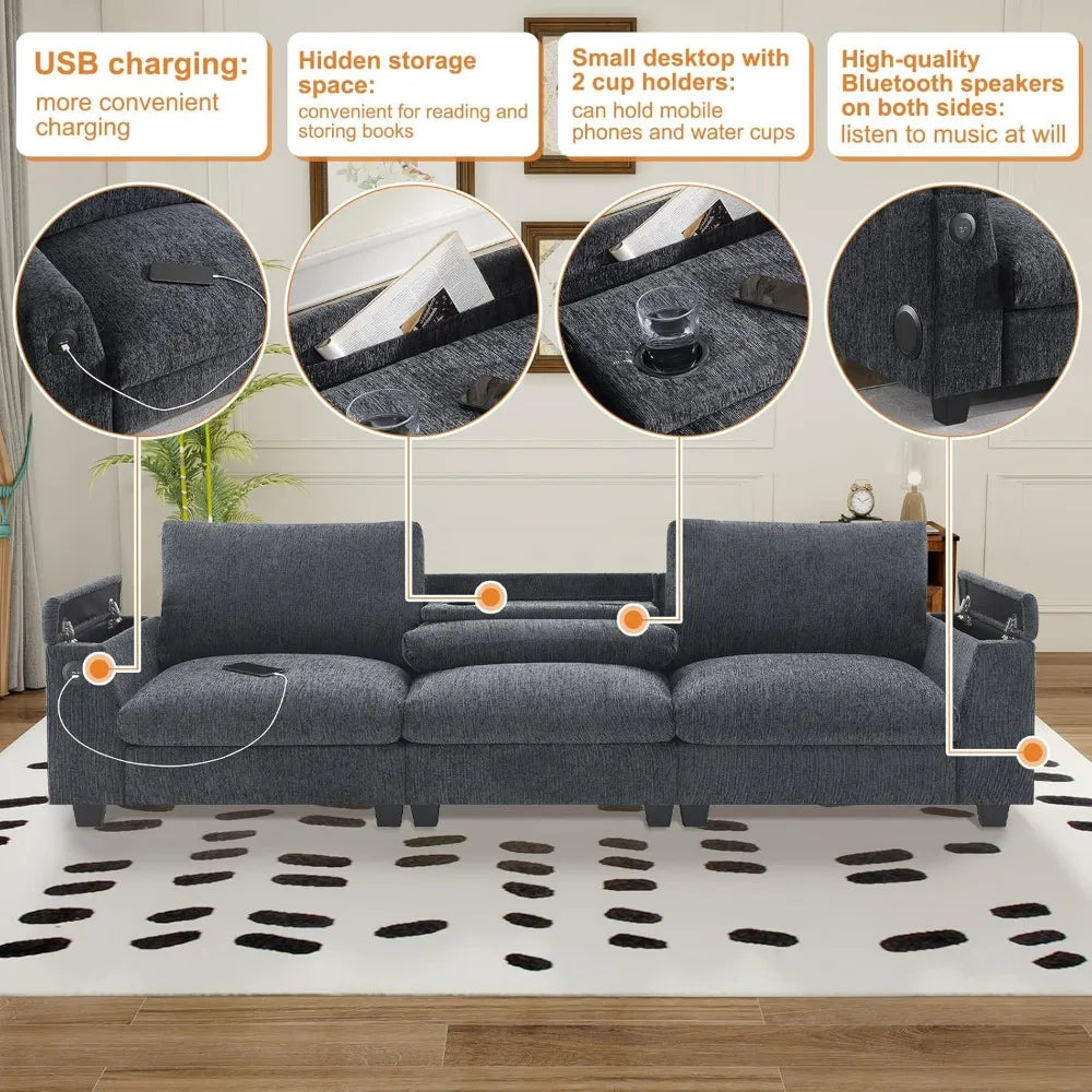 Meet the 96'' Chenille Sectional Sofa with Bluetooth Speaker — all the style, comfort, and smart features you want, at a price that makes sense. Designed to combine lasting quality with practical details, this sectional sofa fits seamlessly into your living room, offering a savvy solution for those who value both function and style without overspending.