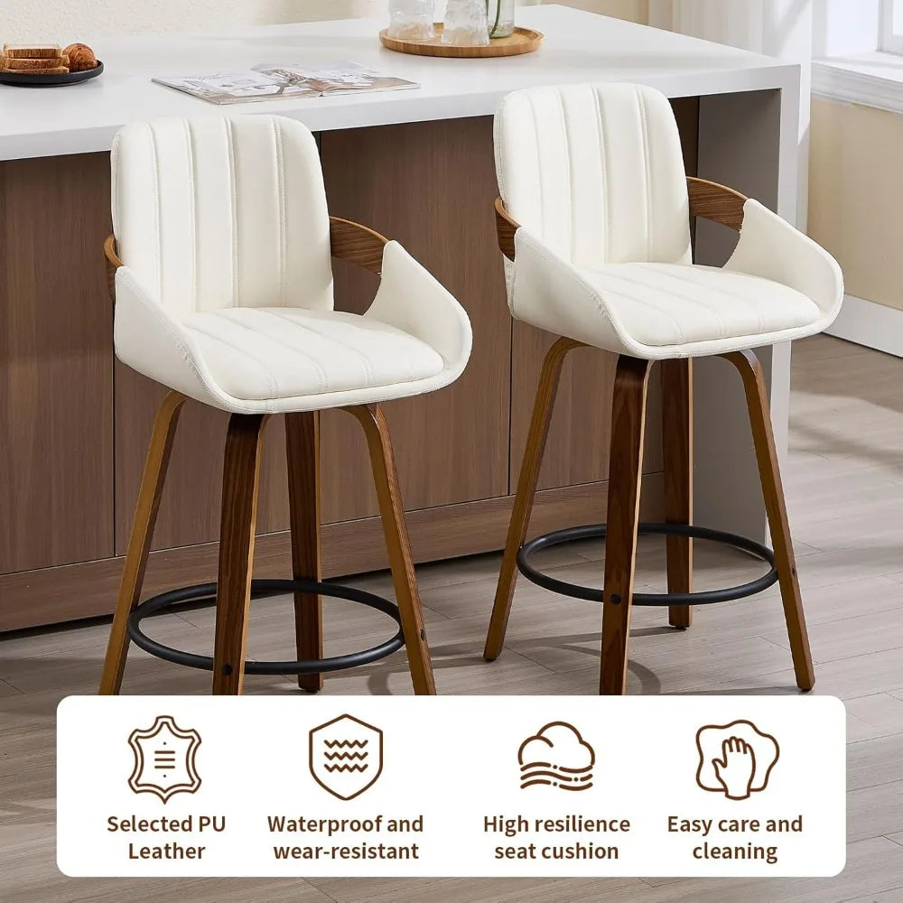 Designed with your comfort in mind, these stools feature a curved backrest that provides effective lumbar support and integrated armrests to rest your arms naturally. The built-in metal footrest sits at an ideal height to reduce leg fatigue, whether you’re enjoying a quick breakfast or unwinding with friends. Plus, the 360-degree swivel function lets you turn easily to chat or reach for a dish, making these stools as functional as they are stylish.