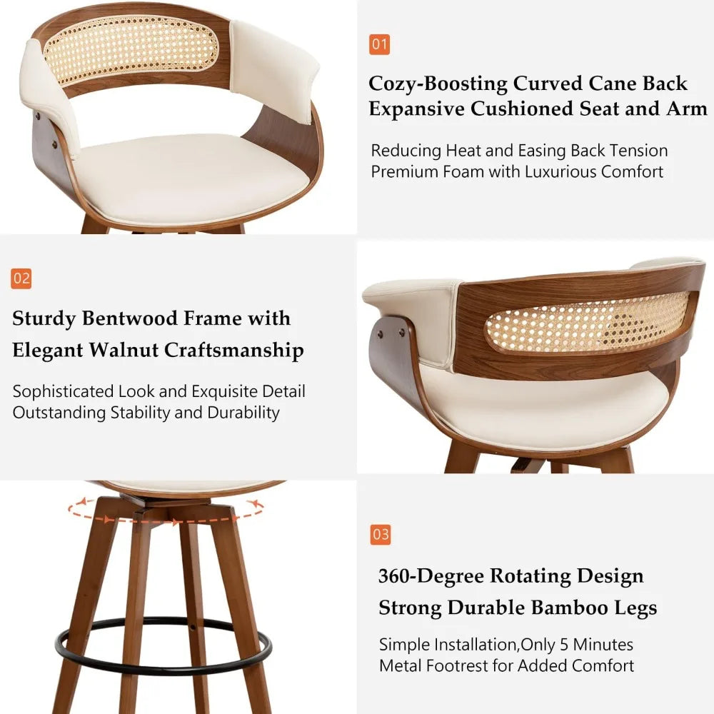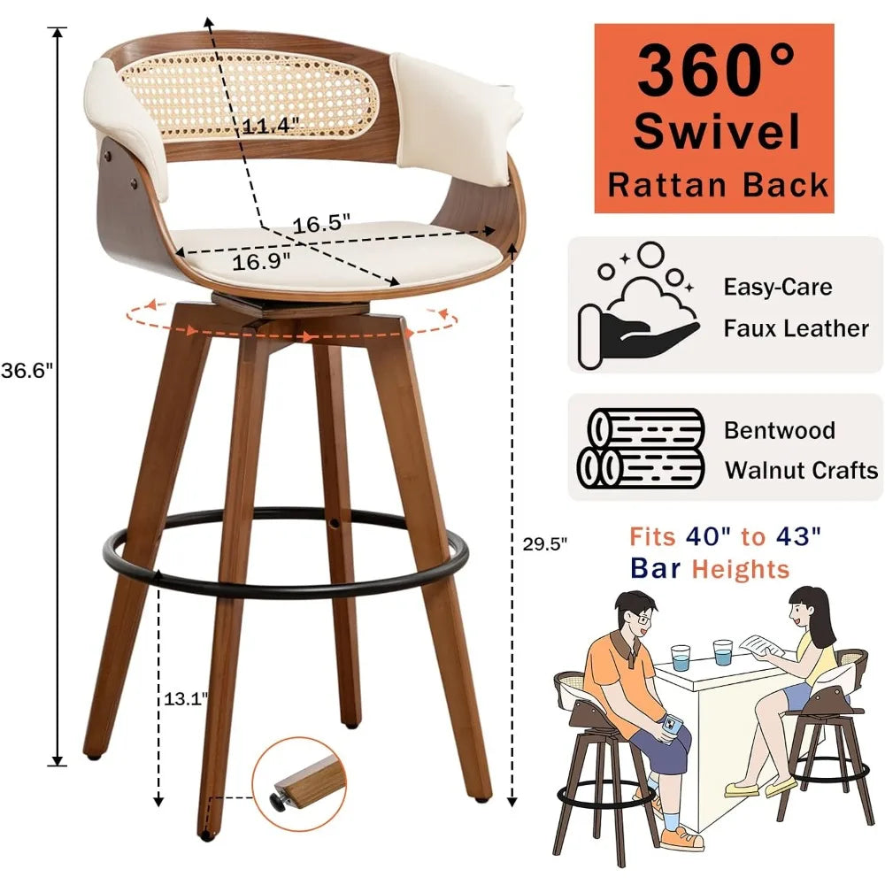 Meet the Bar Stools Set of 2 - 29.5 inch Swivel Bar Stools with Curved Rattan Back, Walnut Craftsmanship, Faux Leather Upholstered Seat by FurnitureZ: all the style and durability you want, at a price that fits your budget. These stools bring together thoughtful design, quality materials, and practical features to create a seating solution that’s both attractive and built to last.