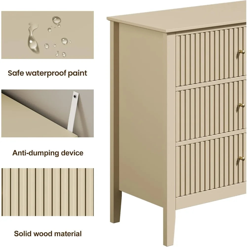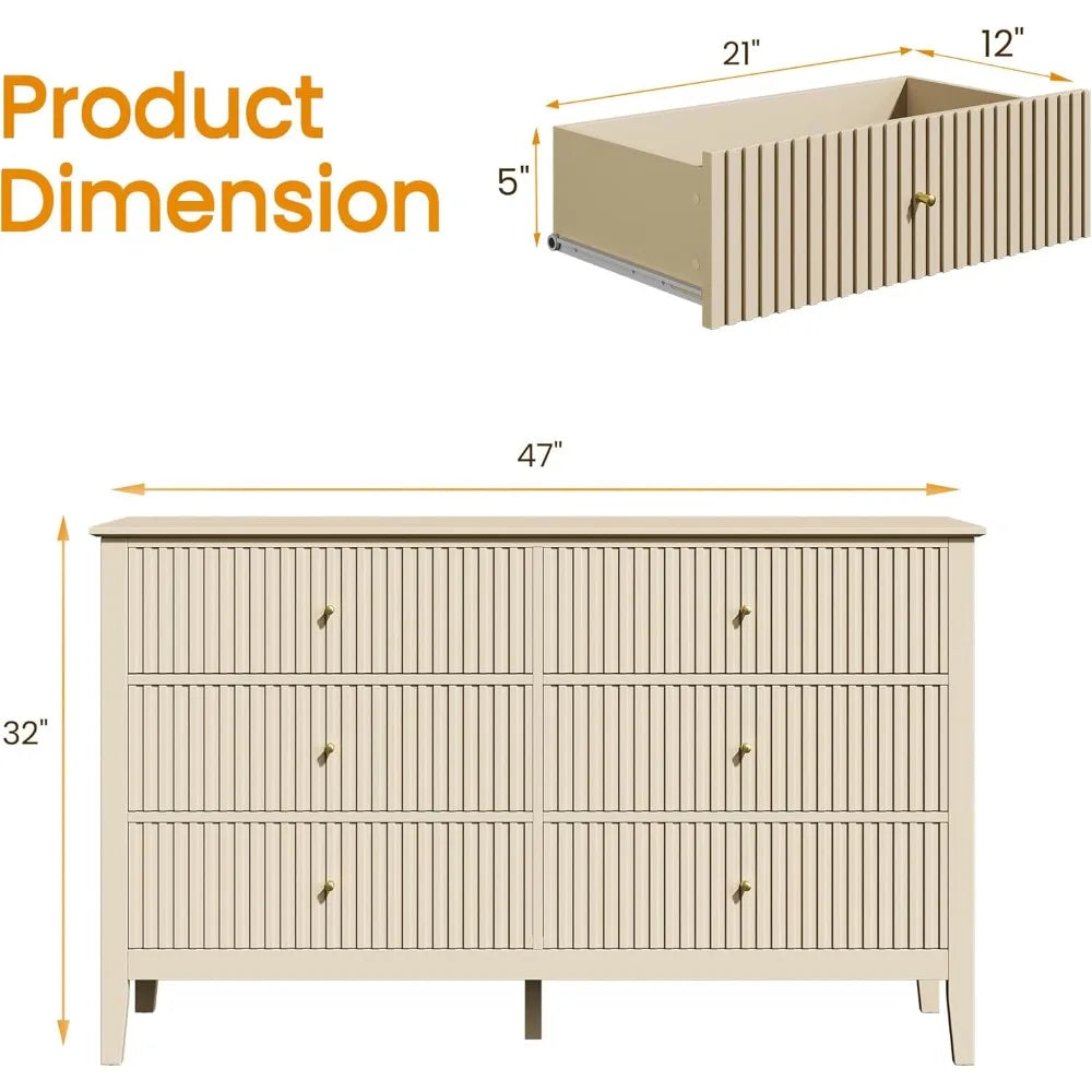 FurnitureZ l Beige Modern Fluted 6-Drawer Dresser for Living Room, Bedroom