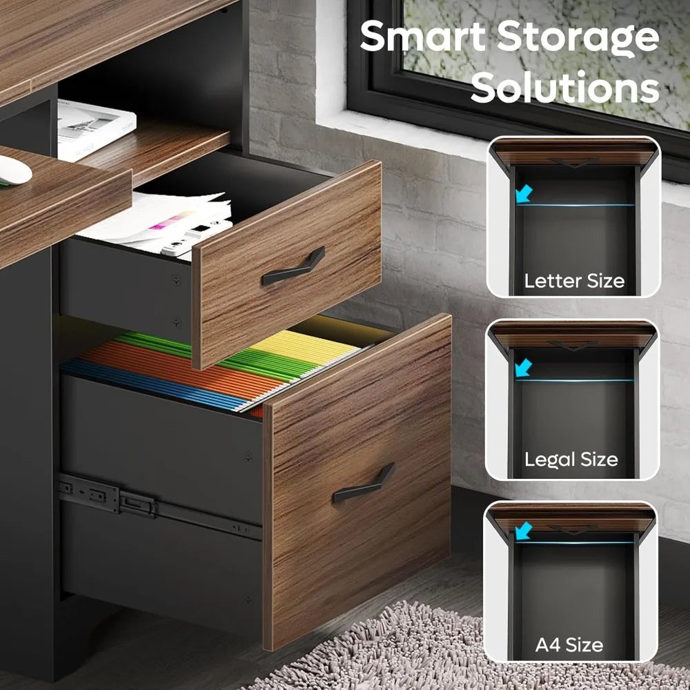 - Smart Storage: Multiple compartments including a file drawer for organized, accessible workspace essentials.