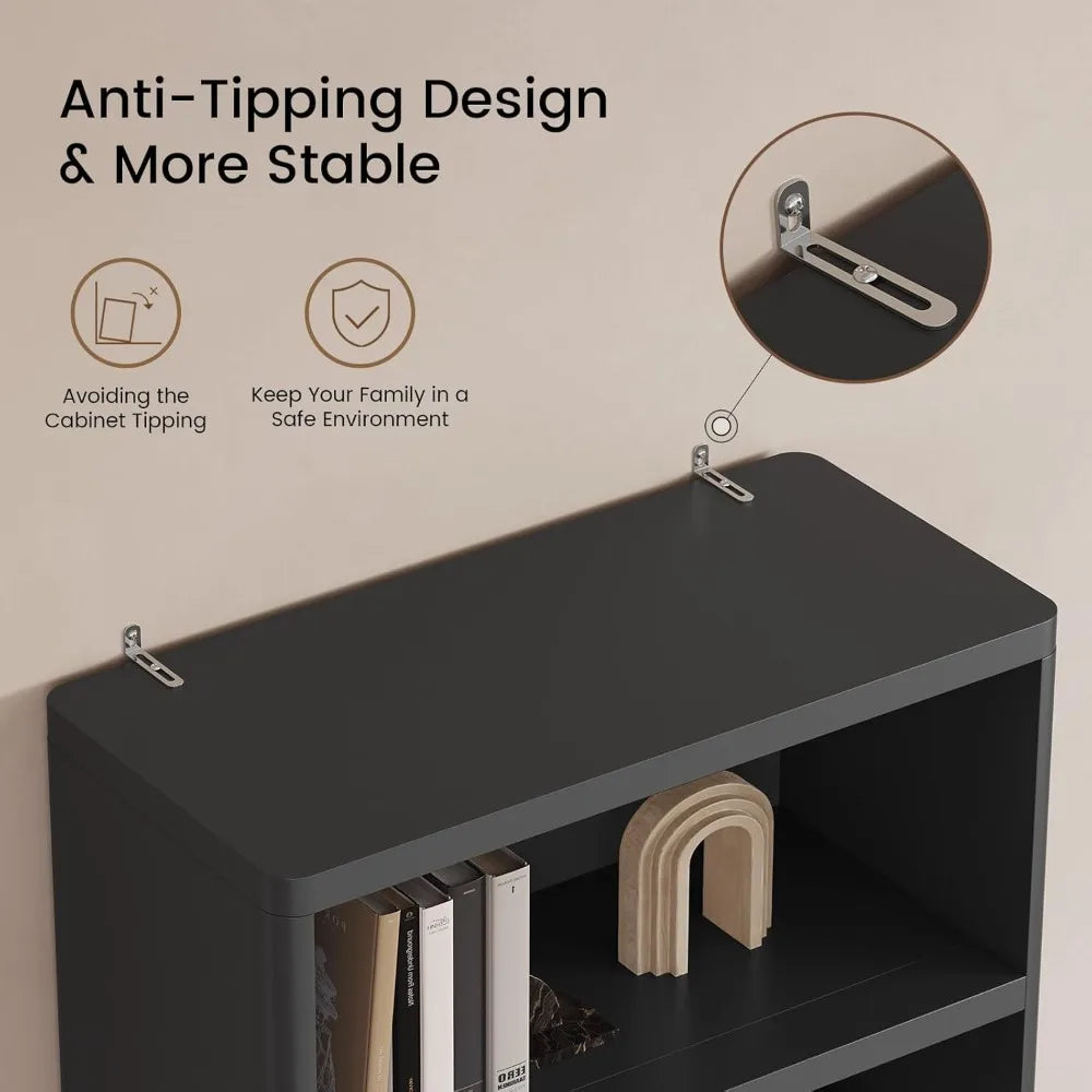 Safety and stability are top priorities. The bookcase comes equipped with an anti-tip kit, helping to prevent accidents and keep your family safe. Additionally, non-slip feet ensure the unit stays firmly in place even on uneven floors, while protecting your flooring from scratches.