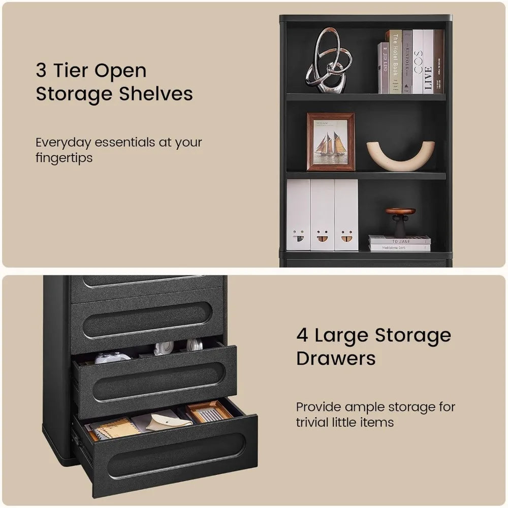 - Generous Storage: Combination of open shelves and four waterproof drawers offers flexible organization options for various items.