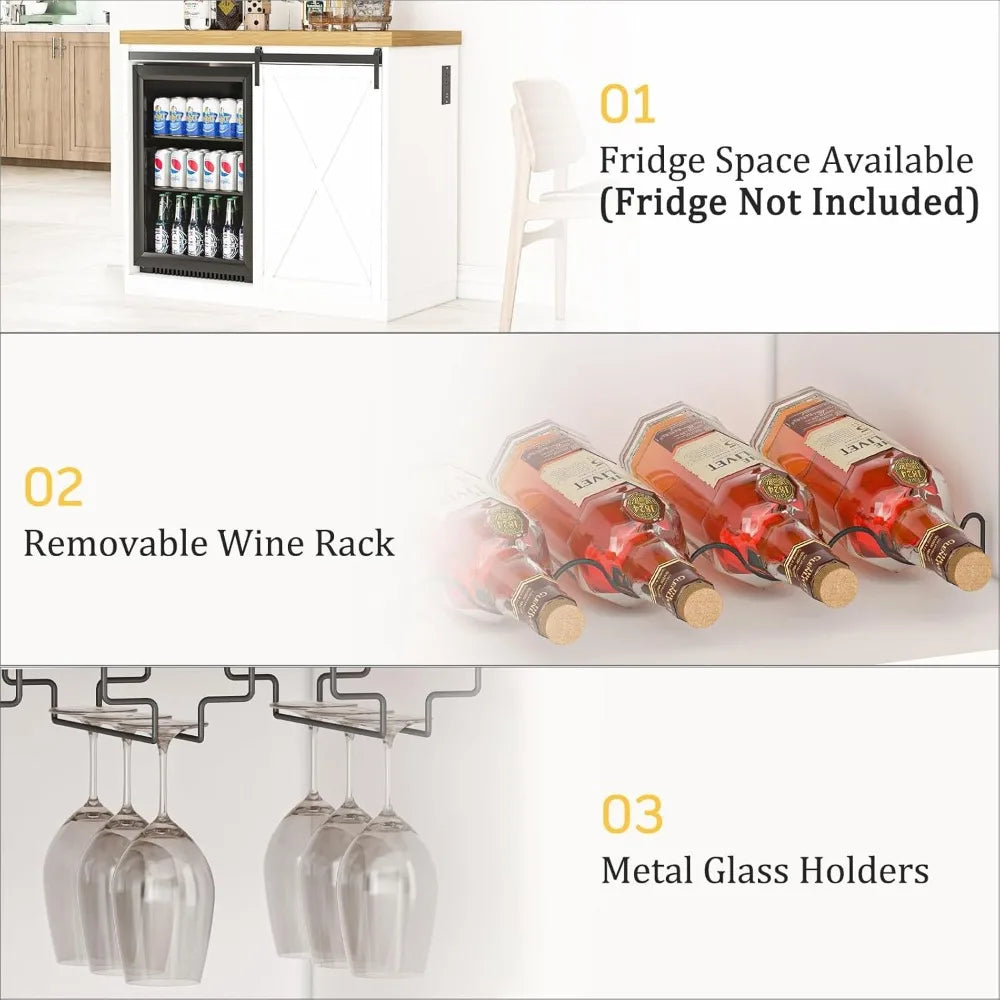 - Smart Storage: Holds up to 10 wine bottles and 10 tall glasses, plus space for a compact fridge or decorative items.