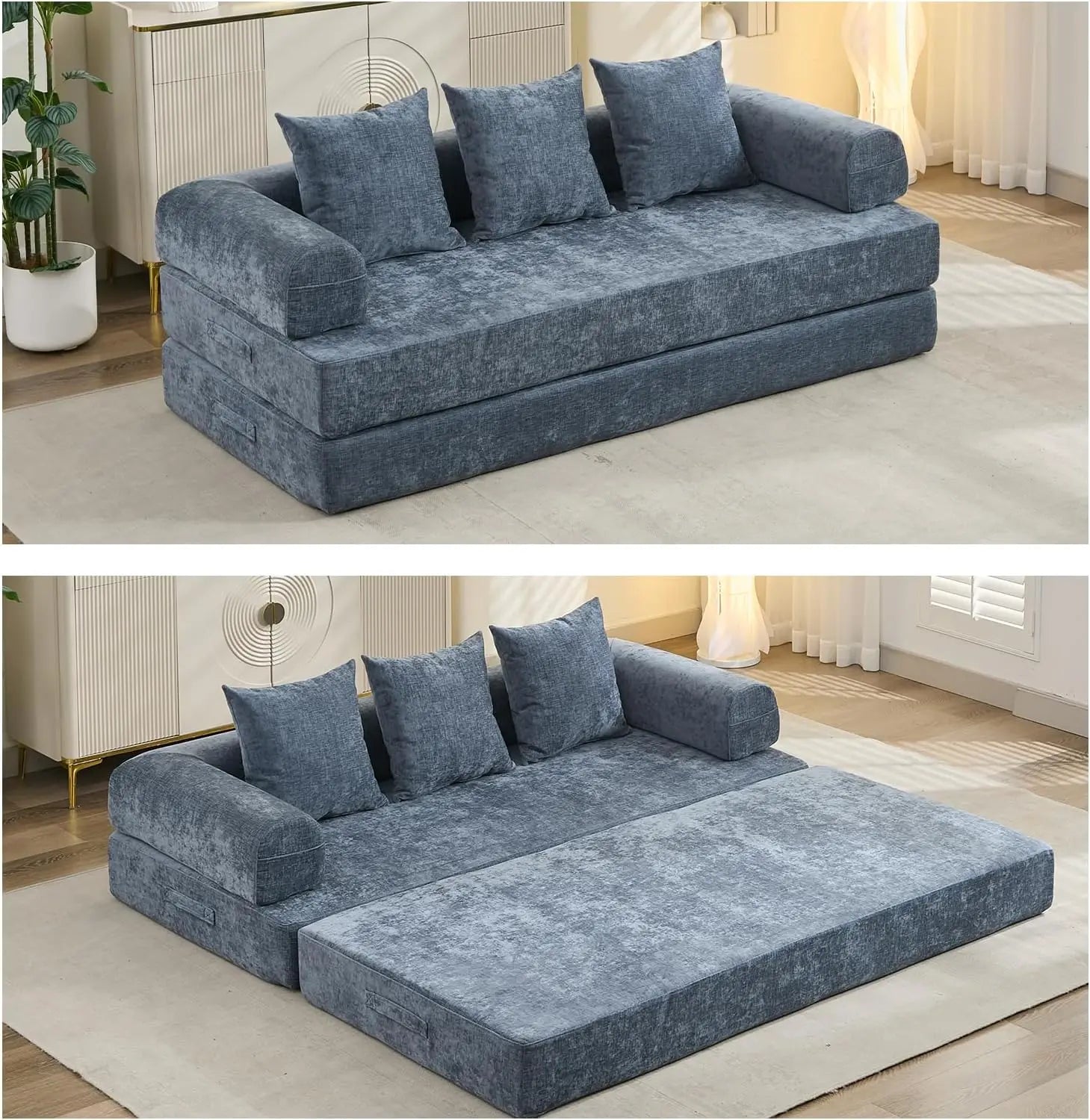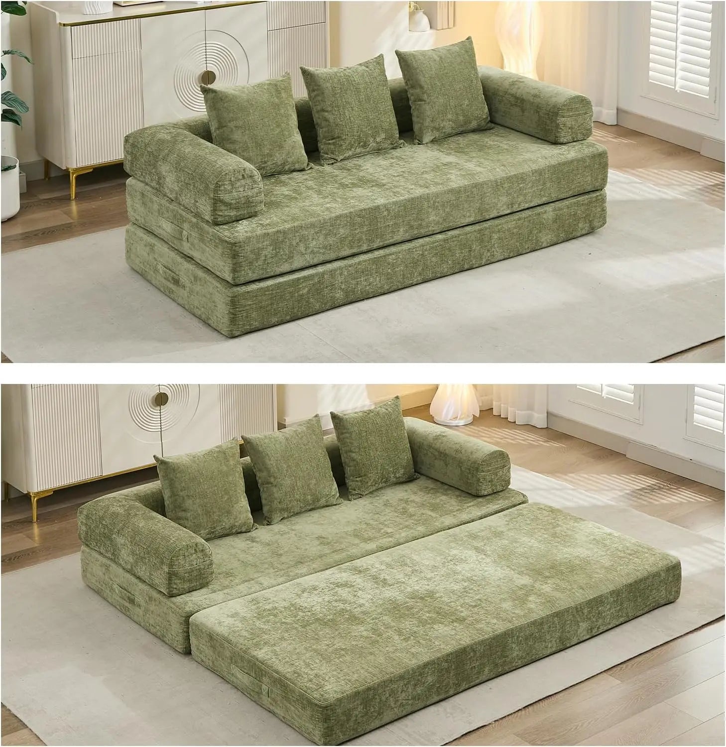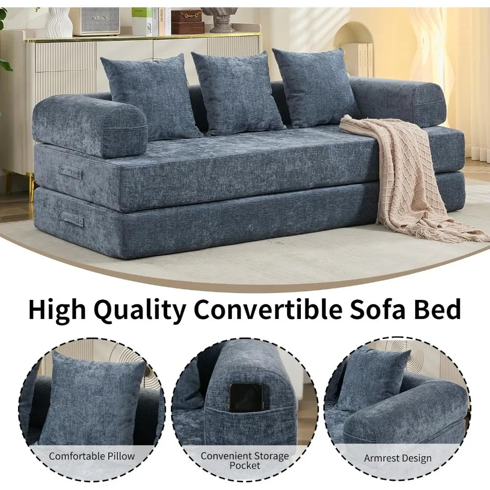 At its core, this sofa features high-density memory foam cushions that deliver a perfect balance between firm support and plush comfort. Unlike sofas with bulky, rigid frames that can wear out or lose shape over time, the memory foam keeps its form and provides consistent support, whether you’re sitting, lounging, or sleeping. The cushions are wrapped in soft, breathable chenille fabric that feels great against your skin and is easy to maintain, so your sofa stays fresh and inviting day after day.