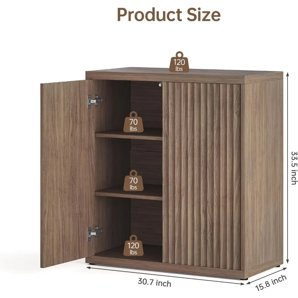 Measuring 15.8" deep by 30.7" wide and 33.5" high, this buffet provides 40% more storage capacity than typical sideboards. That means you get more room for your dining essentials, glassware, or decorative items without taking up extra floor space. Its thoughtfully crafted design blends modern aesthetics with everyday functionality, featuring a wave-textured fluted surface and a sleek narrow frame that fits perfectly in compact kitchens, hallways, or apartments.