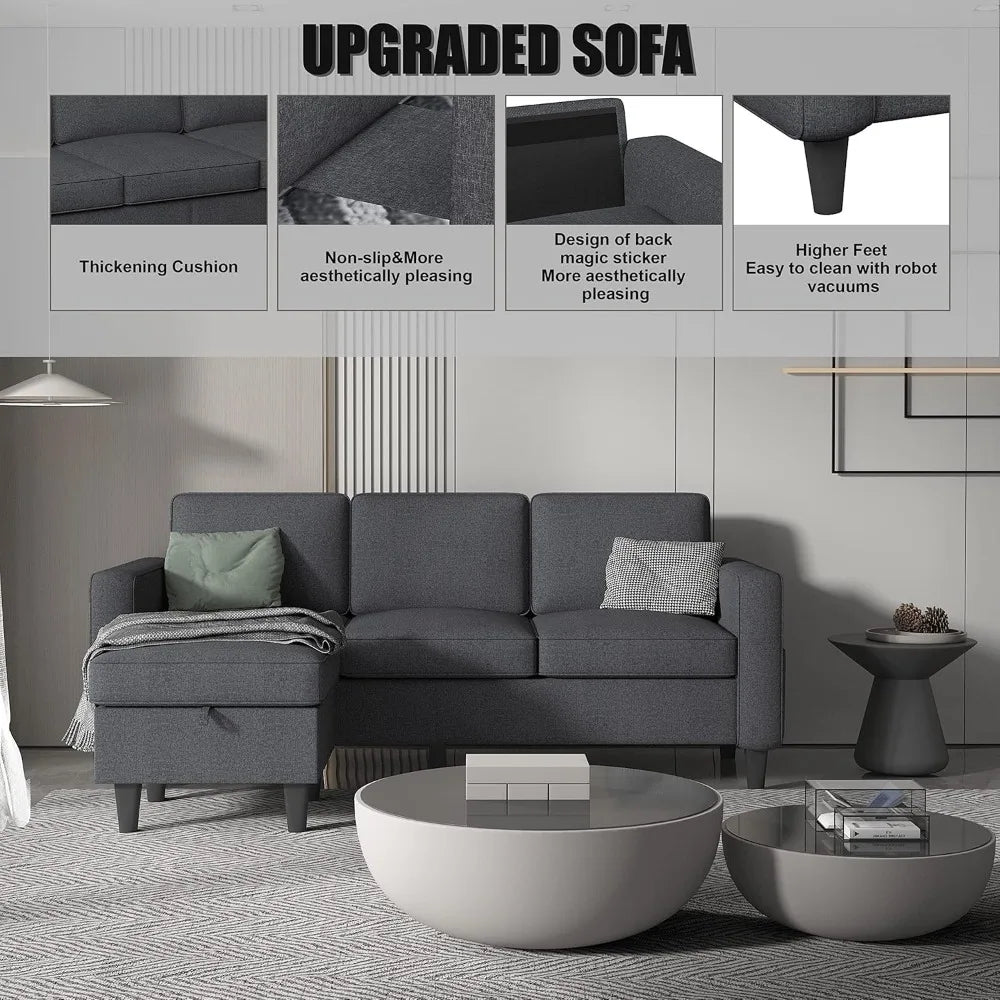 FurnitureZ l Modern Linen Fabric Upholstered L-Shaped Sofa Couch for Living Room