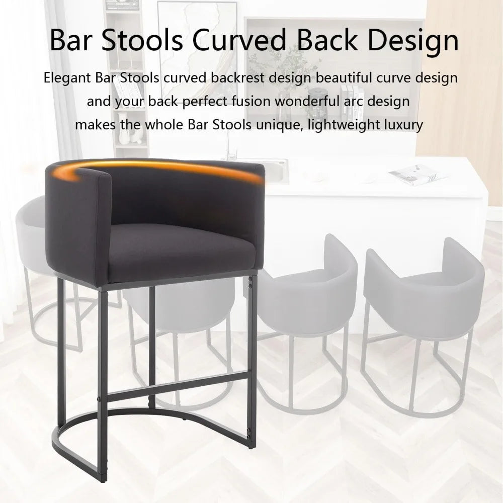 Designed with a nod to mid-century modern aesthetics, these stools combine a timeless barrel shape with sleek metal frames that bring both stability and style to your space. The black linen upholstery adds a touch of sophistication while remaining practical for everyday use. The fabric is soft and skin-friendly, making these stools comfortable for long chats or casual meals.