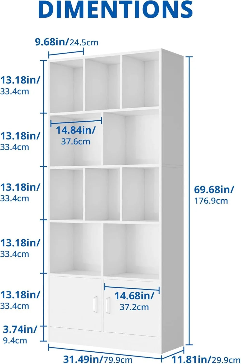 With a well-thought-out layout, the bookshelf offers 10 cube compartments paired with 2 closed cabinets, giving you flexible storage options. Whether you want to showcase your favorite books and decor, store important files, or hide clutter behind cabinet doors, this design adapts to your needs. The cubes are spacious enough to hold larger items as well as smaller knick-knacks, helping you keep your space tidy and personalized.