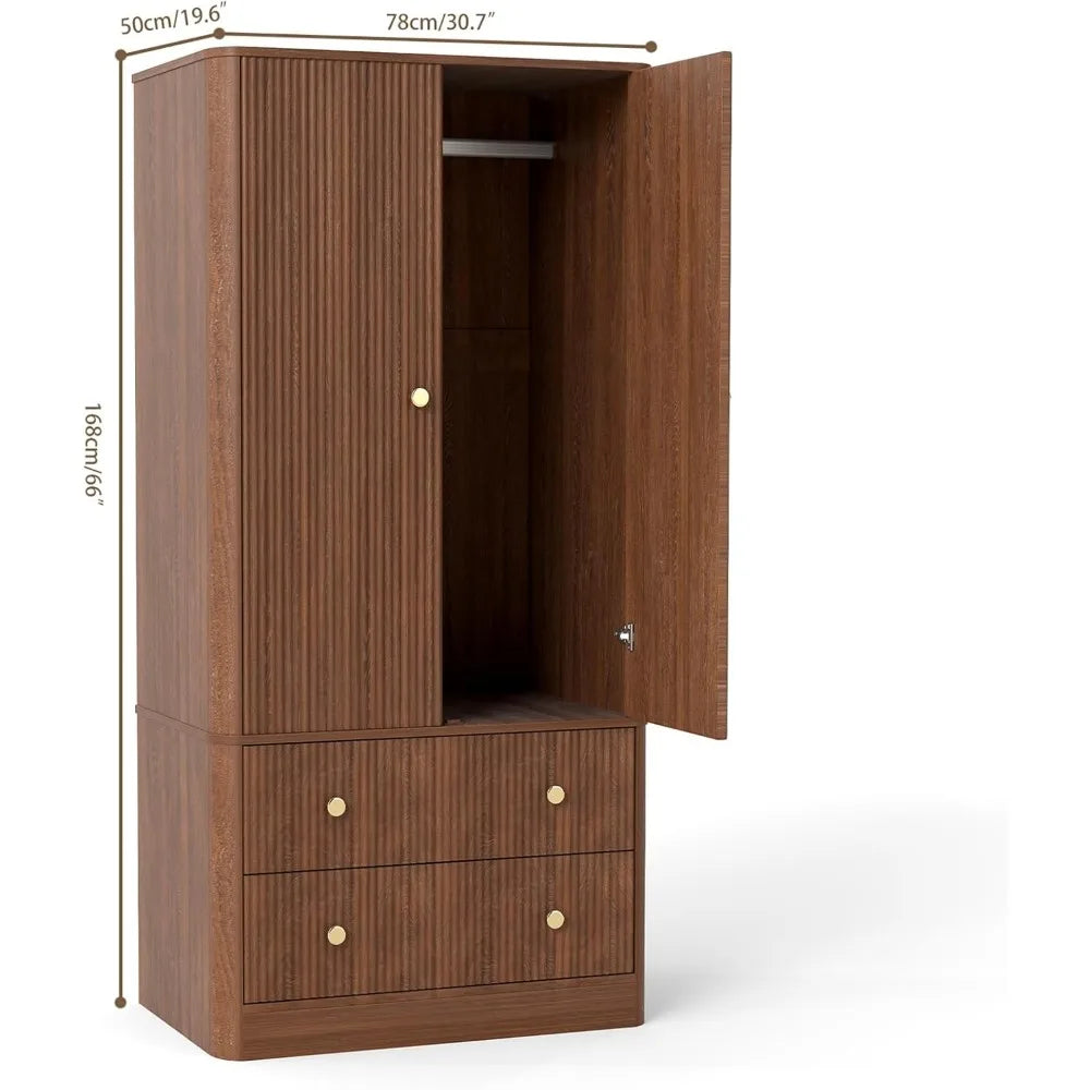 Meet the Curved Profile Wooden Armoire with Double Doors, Hanging Rod, and Two Drawers from FurnitureZ: a smart, stylish storage solution designed to bring both elegance and practicality to your home, all at a price that respects your budget.