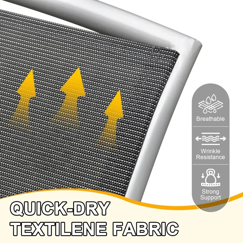 Meet the Patio Folding Chairs Set of 2 by FurnitureZ: all the style and durability you want for your outdoor spaces, at a price that makes sense. These chairs combine thoughtful design with lasting quality, making them the smart way to furnish your garden, poolside, beach, or camping setup without overspending. Built with a robust aluminum frame, each chair offers a sturdy foundation that resists rust and wear, so you can count on them season after season. The thickened aluminum supports up to 350 lbs, providing reliable strength for everyday use. This means you get real value — durable outdoor seating designed to keep up with your lifestyle. The breathable Textilene fabric not only keeps you cool under the sun but also stretches comfortably to reduce pressure points, so you stay relaxed longer. Its dark gray color paired with the sleek silver frame gives the chairs a modern look that fits effortlessly with a variety of outdoor decors. Whether you’re lounging on your deck or taking a break at the beach, these chairs offer a contemporary elegance that’s both stylish and practical. What makes these chairs truly convenient is their foldable design. The legs fold neatly for compact storage, making them easy to transport in your car or store away when not in use. Perfect for camping trips, picnics, or simply moving them around your yard, the portability adds a level of flexibility that suits an active outdoor lifestyle. Comfort is key with the chairs. The high backrest supports your neck and head with its ergonomic tilt, while the wide armrests give you extra space to rest comfortably. Plus, the 145° adjustable recline with 7 positions lets you customize your seating angle for everything from upright dining to relaxed lounging. The extra-wide 19.3-inch seat ensures plenty of room, so you can settle in without feeling cramped. Why You’ll Love the Patio Folding Chairs: