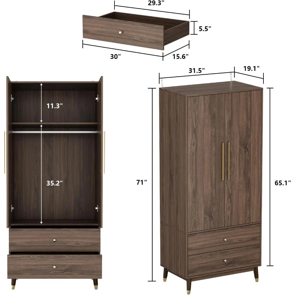 Crafted from high-quality engineered wood, this armoire offers reliable durability and stability. The MDF frame is resistant to water and scratches, so it keeps looking great through everyday use. Two spacious drawers glide smoothly, providing ideal spots for undergarments and small accessories, while the sturdy metal rod inside lets you hang dresses, suits, coats, and other longer garments without worrying about wrinkles.