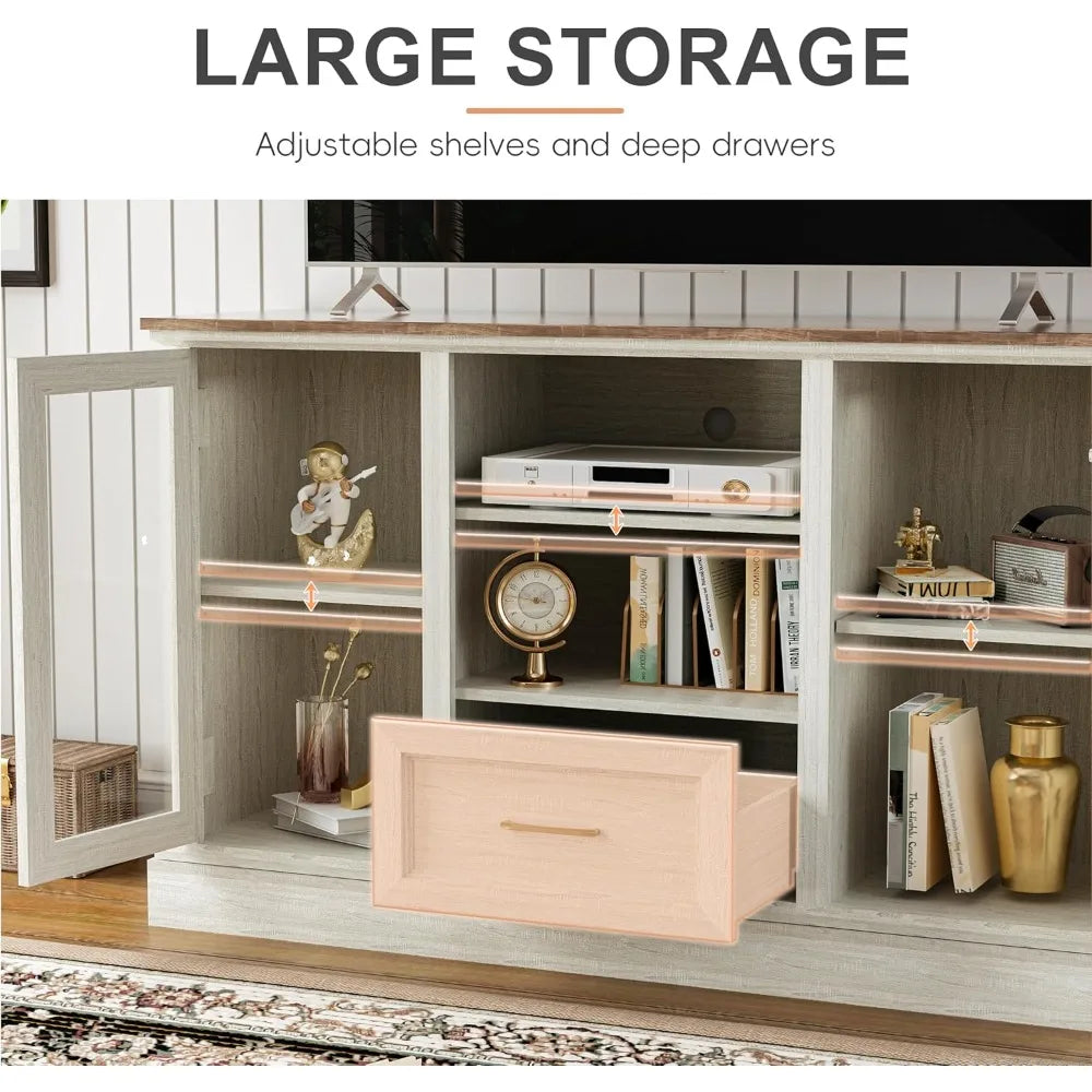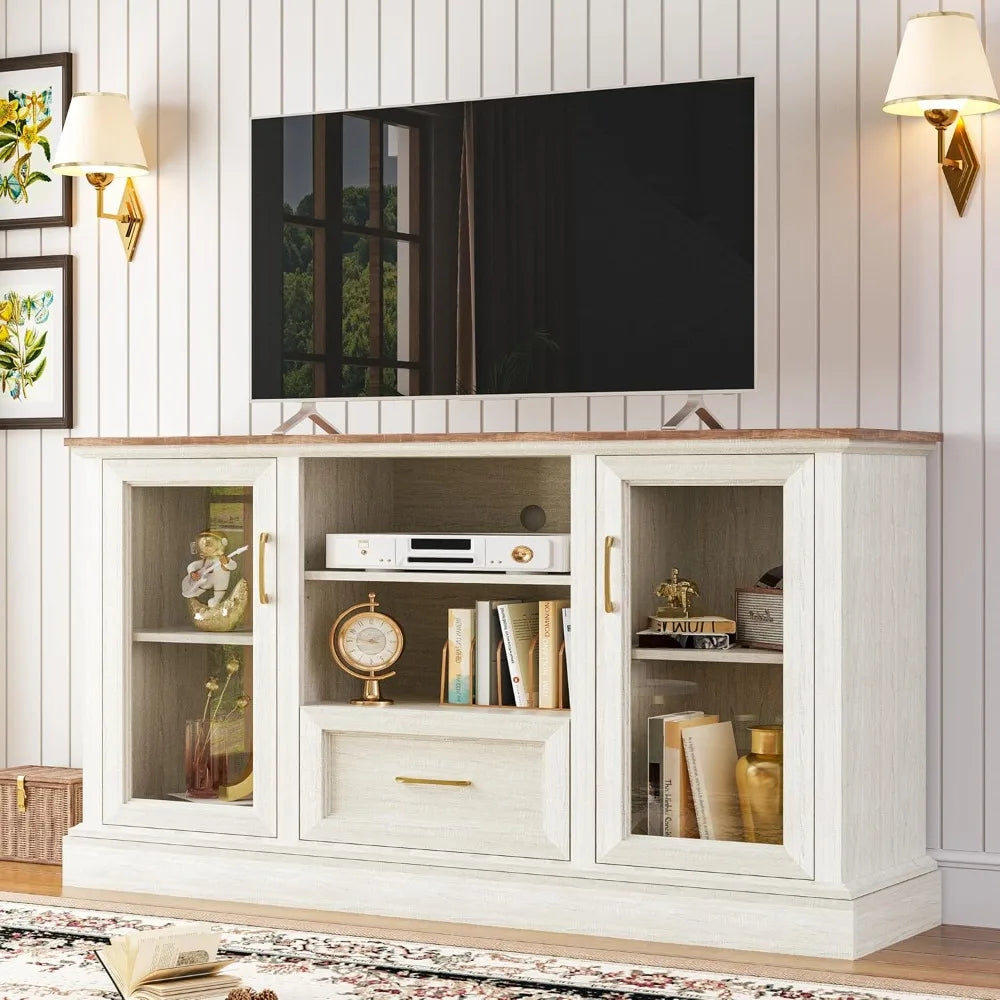 Elegant Tall Wood Media Console with Glass Doors and Adjustable Shelves for 55-65 Inch TVs