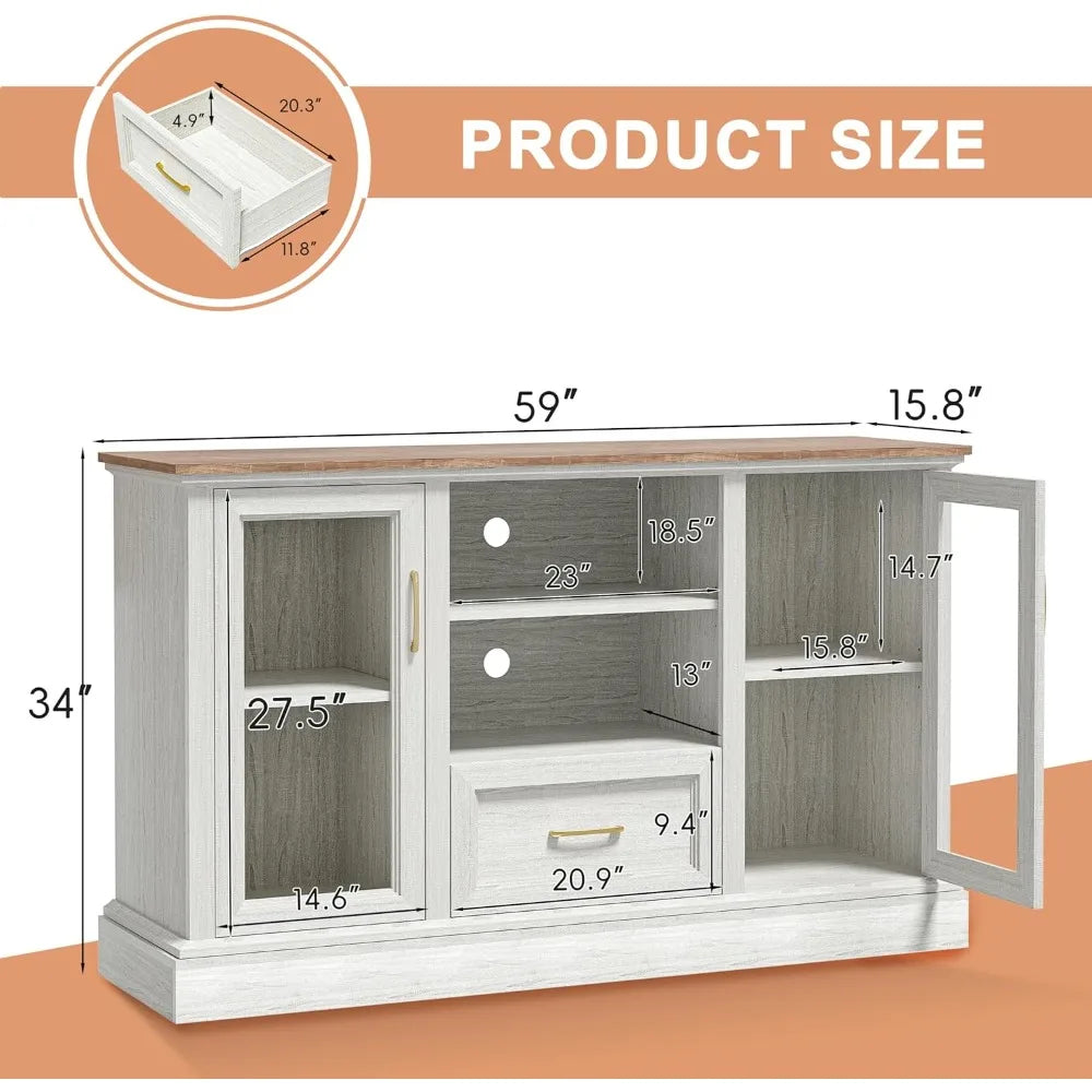 Designed for TVs between 55 and 65 inches, the console measures 15.7 inches deep, 59 inches wide, and 34 inches high—making it a smart fit for medium to large living rooms. Its tall profile offers generous storage without taking up excessive floor space, ideal for those who want to keep their media area neat and organized.