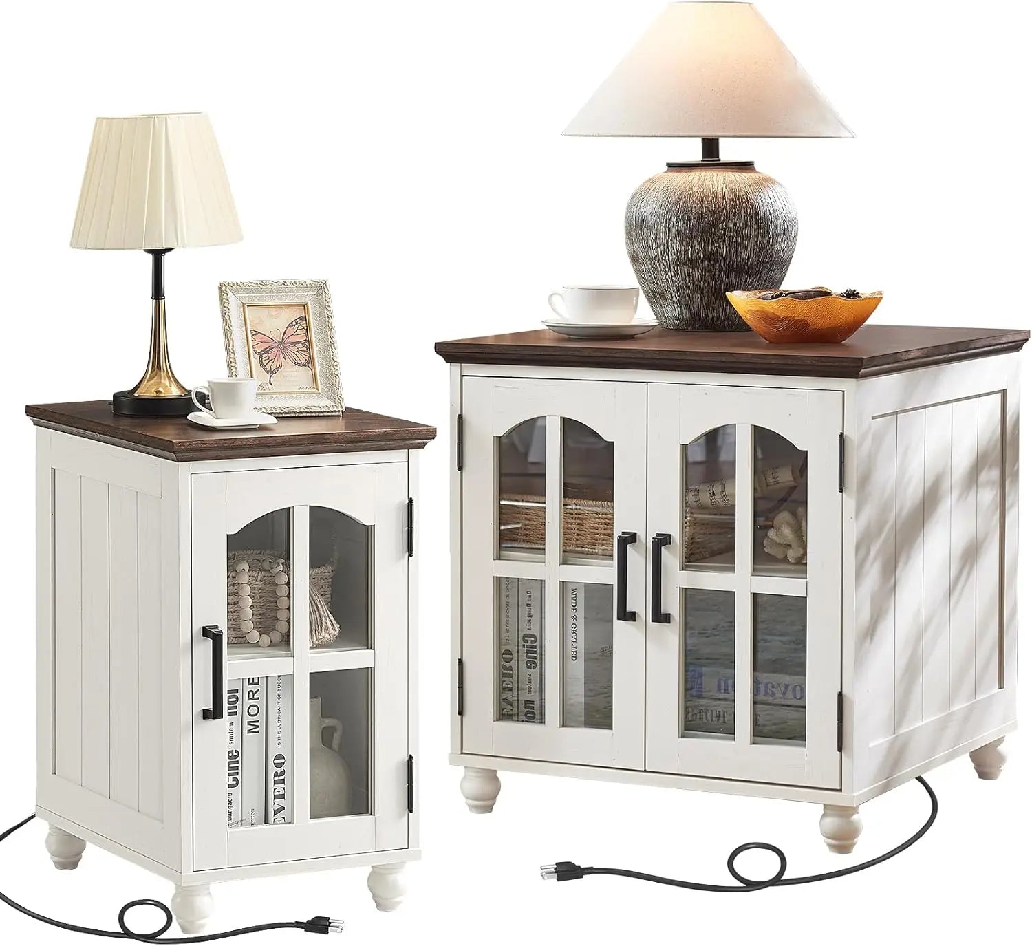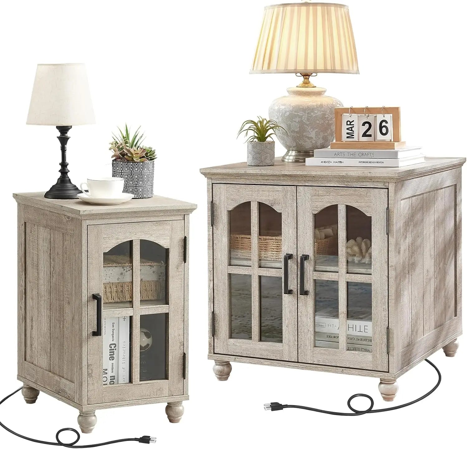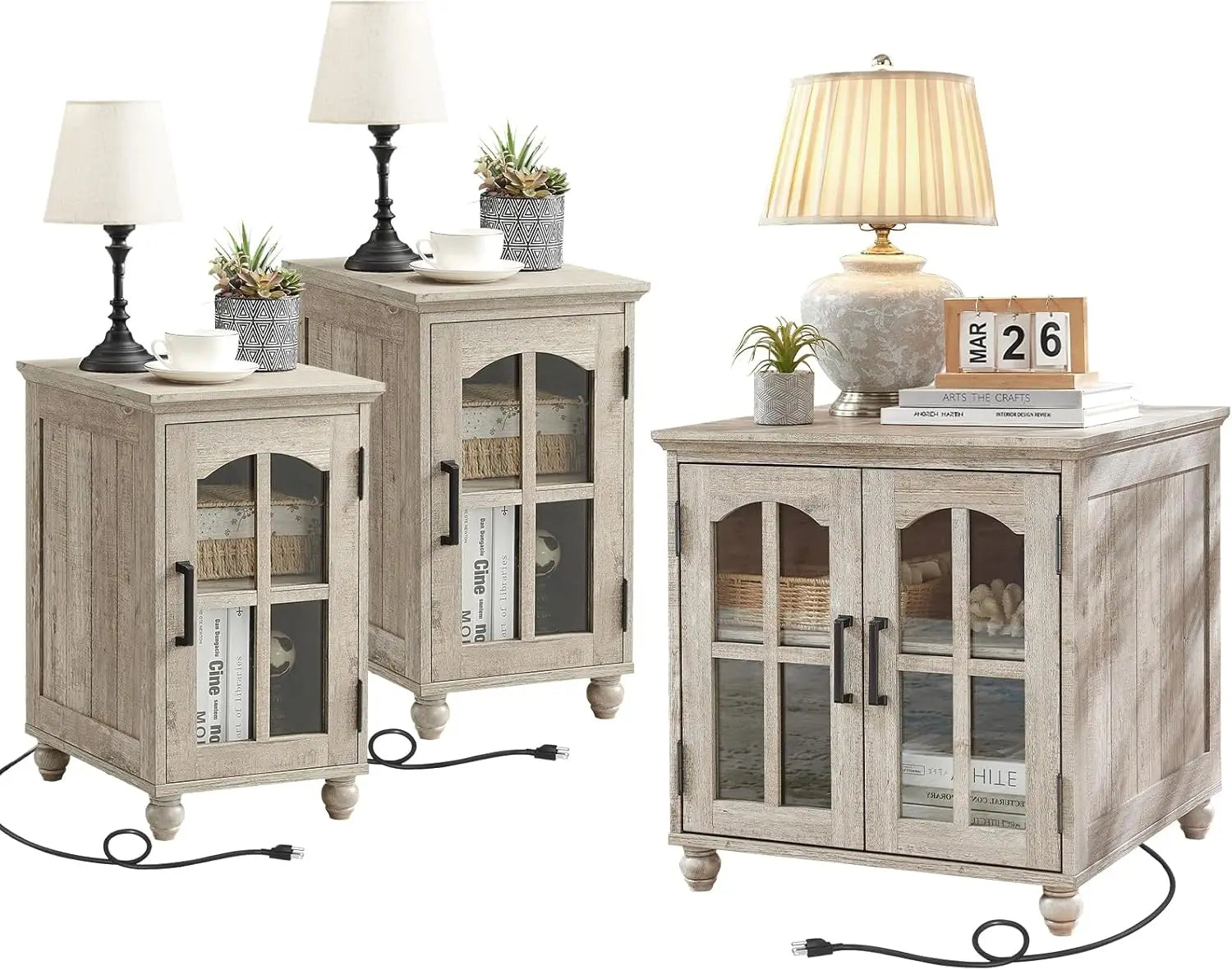 Whether you’re furnishing a small apartment, a starter home, or adding functional pieces to your living room, this farmhouse end table set is designed with your needs in mind. The combination of compact sizing and generous storage options helps keep your space organized and inviting. The built-in charging station eliminates the hassle of searching for outlets, so you can keep your devices powered without interrupting your relaxation or work.