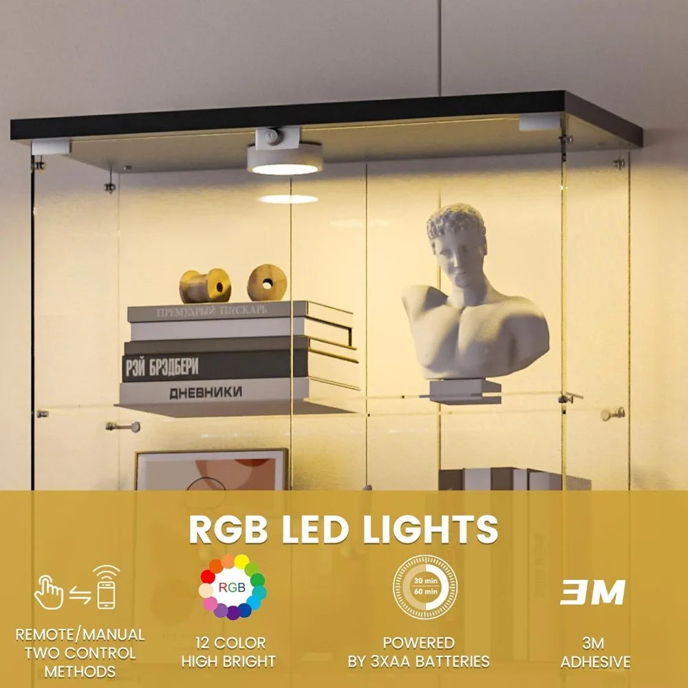 One of the standout features is the integrated RGB LED lighting system. You can choose from 12 vibrant colors using a simple push-button control, powered by three AA batteries for long-lasting use. This lighting not only highlights your displayed pieces beautifully but also adds a customizable ambiance to your room.