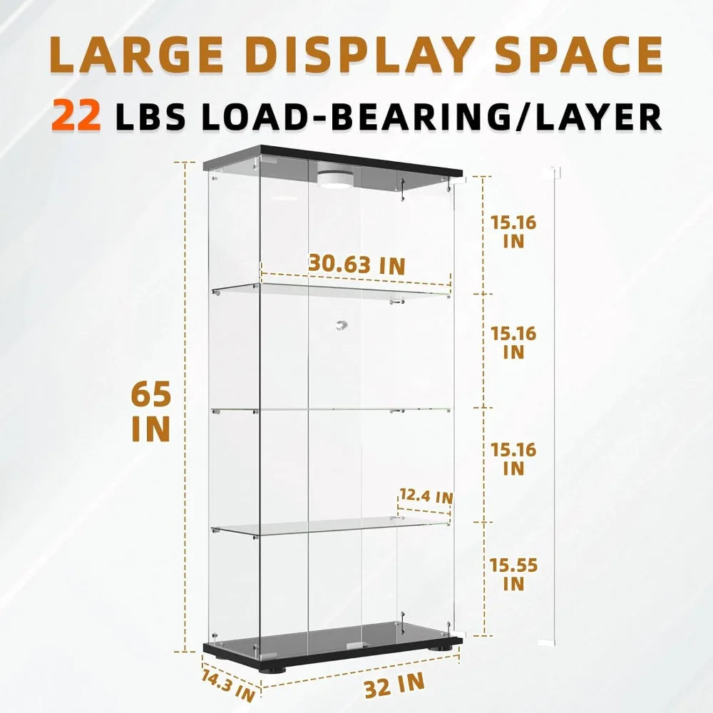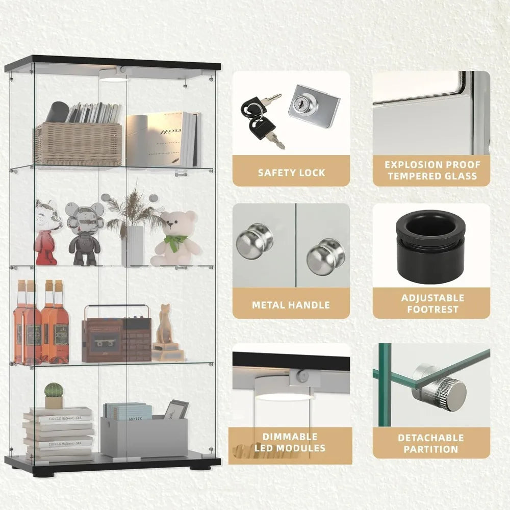 Crafted with tempered glass, this display cabinet ensures superior strength and safety, giving you peace of mind as you display your art crafts, collectibles, or even use it as a stylish wine cabinet or bookshelf. Each shelf supports up to 18 lbs, making it versatile enough for various uses while maintaining a sleek, modern look that fits seamlessly into any room décor.