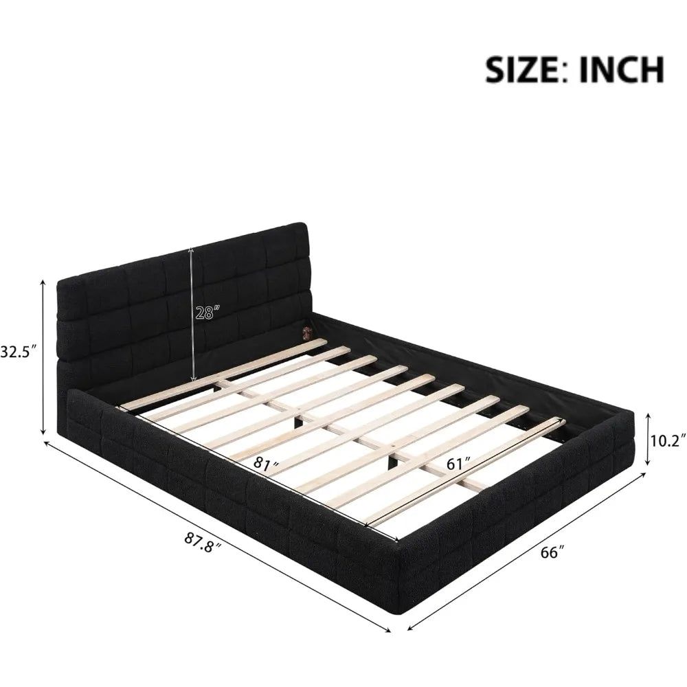 This bed frame’s dimensions—87.8 inches long, 66 inches wide, and 32.5 inches high—make it an excellent fit for a queen-size mattress, ideal for a variety of spaces, from first apartments to guest rooms. Its modern style pairs effortlessly with many decor themes, adding a touch of sophistication without overwhelming your room. The black berber fleece fabric finish brings a contemporary yet timeless vibe, making it easy to coordinate with your existing furniture.