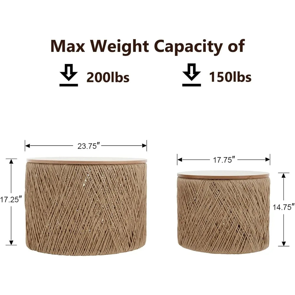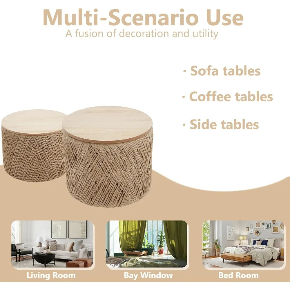 The standout feature is the beautifully woven rope design, handcrafted by skilled artisans who knot each piece with care. This attention to detail not only adds a natural, textured look but also ensures lasting strength and elasticity, so the tables stand up well to everyday use without easily breaking or losing shape. The wooden tops provide a solid, smooth surface for your coffee cups, snacks, or décor, while the natural color palette complements a variety of interiors from modern to boho-chic.