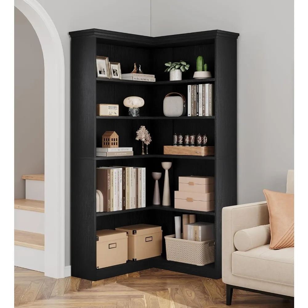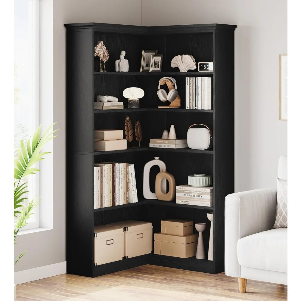 FurnitureZ l 72.8" Corner Bookshelf for Living Room, Bedroom, Home Office