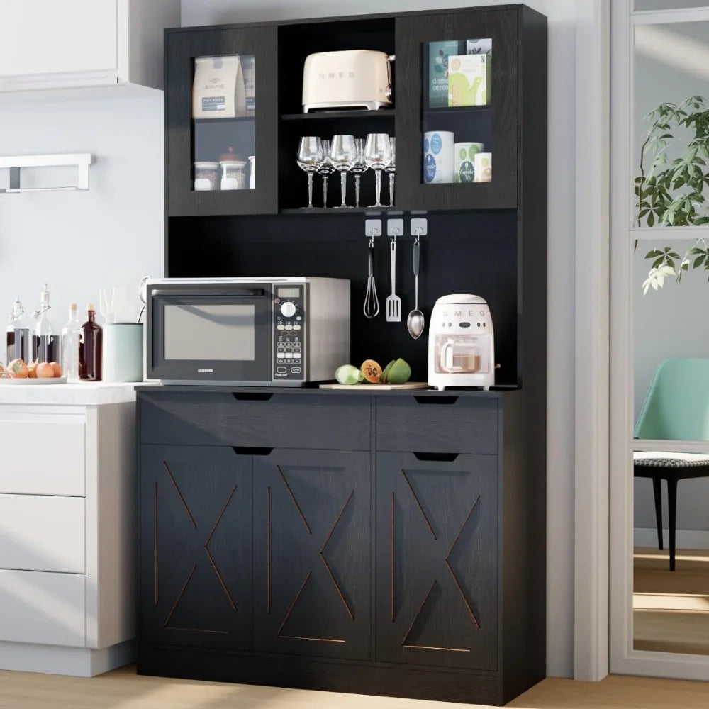 The combination of open shelving and closed cabinetry strikes a balance between display and concealed storage, helping you maintain a neat and organized kitchen. Whether you want to showcase your favorite dinnerware or keep less attractive items tucked away, this cabinet adapts to your needs.