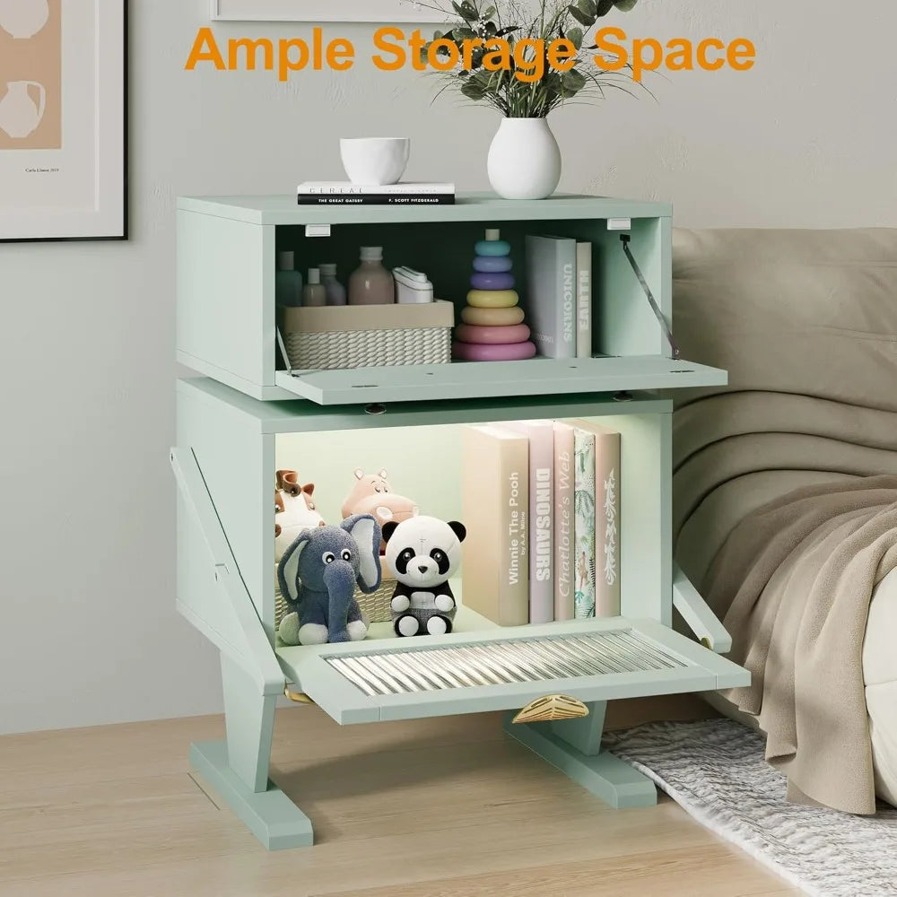 FurnitureZ l Large Nightstand with LED Lights for Bedroom, Children