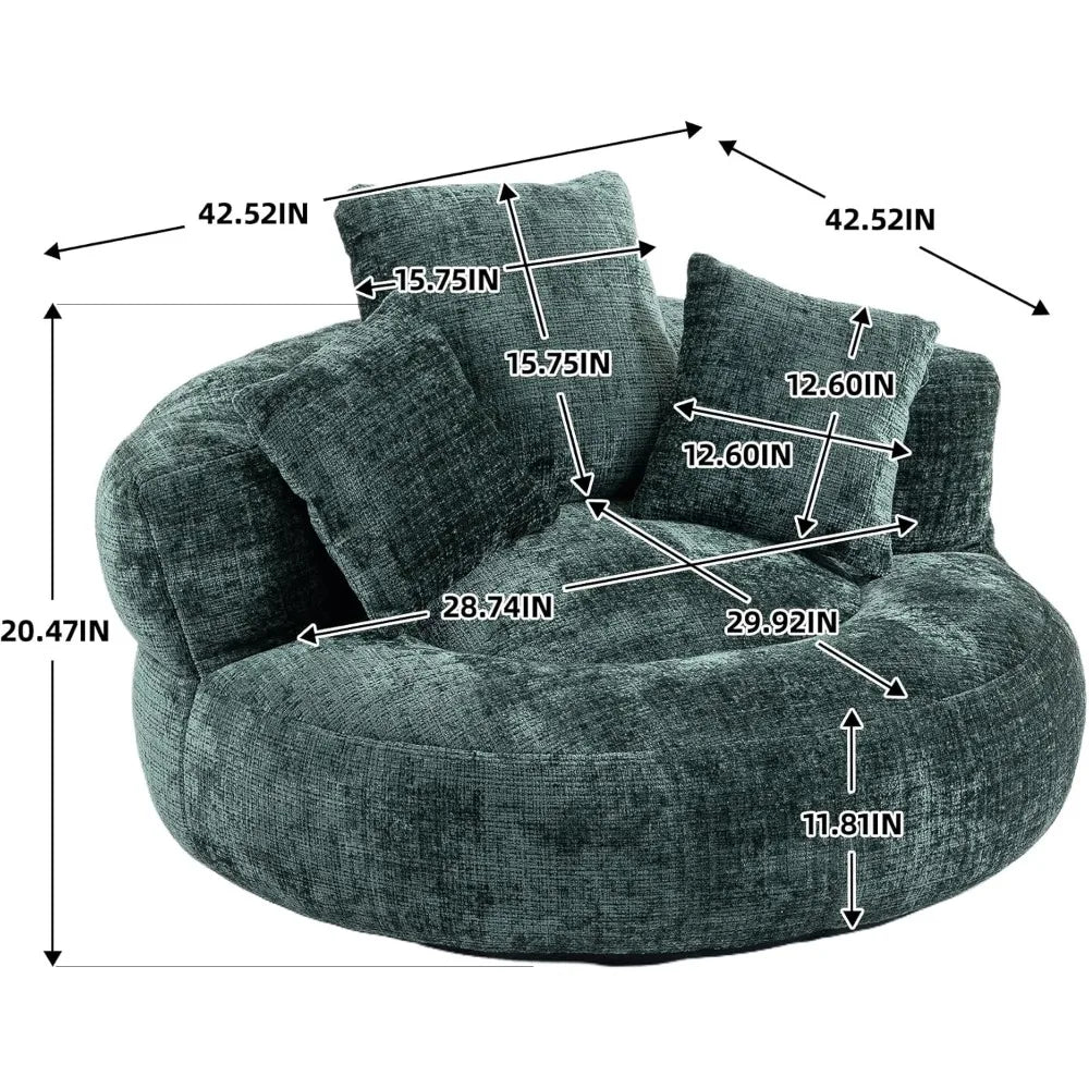 At 44 pounds and measuring 42.52"D x 42.52"W x 20.46"H, this round bean bag chair is substantial enough to support adults comfortably but still easy to reposition when needed. The swivel feature adds an extra layer of convenience, making it simple to turn toward the TV, a friend, or your gaming setup without having to stand up.