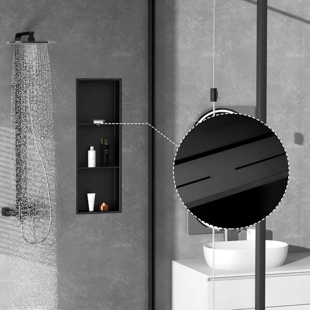 Crafted from high-quality Stainless Steel 304, this shower niche is built to last. Its robust material resists rust and stains, making it ideal for the damp environment of a bathroom. The matte black finish adds a sleek, contemporary look that complements a variety of bathroom styles, from minimalist to industrial. Beyond its stylish appearance, the stainless steel ensures a hygienic and easy-to-clean surface, so you won’t have to worry about mold or mildew buildup.