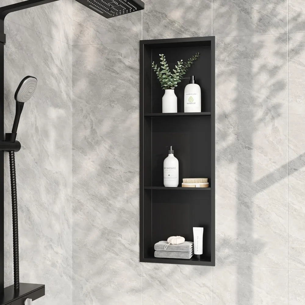 Meet the Matte Black Stainless 3-Tier Recessed Shower Niche: all the style and durability you want, at a price you’ll appreciate. Designed to combine modern aesthetics with practical functionality, this niche offers a smart, space-saving solution for your bathroom storage needs.